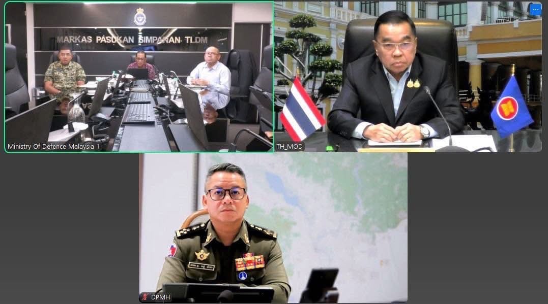 3 ส.ค. 2568 สำนักข่าวเบอร์นามา แชร์เพจเฟสบุ้ค Khalen Nordin ของ ดาโต๊ะ ซรี ฮาจิ โมฮาเม็ด คาเล็ด บิน นอร์ดินรัฐมนตรีว่าการกระทรวงกลาโหมมาเลเซีย พร้อมภาพการประชุมไตรภาคีผ่านวิดีโอทางไกลกับ รักษาการรัฐมนตรีว่าการกระทรวงกลาโหมของไทย รัฐมนตรีว่าการกระทรวงกลาโหมกัมพูชา