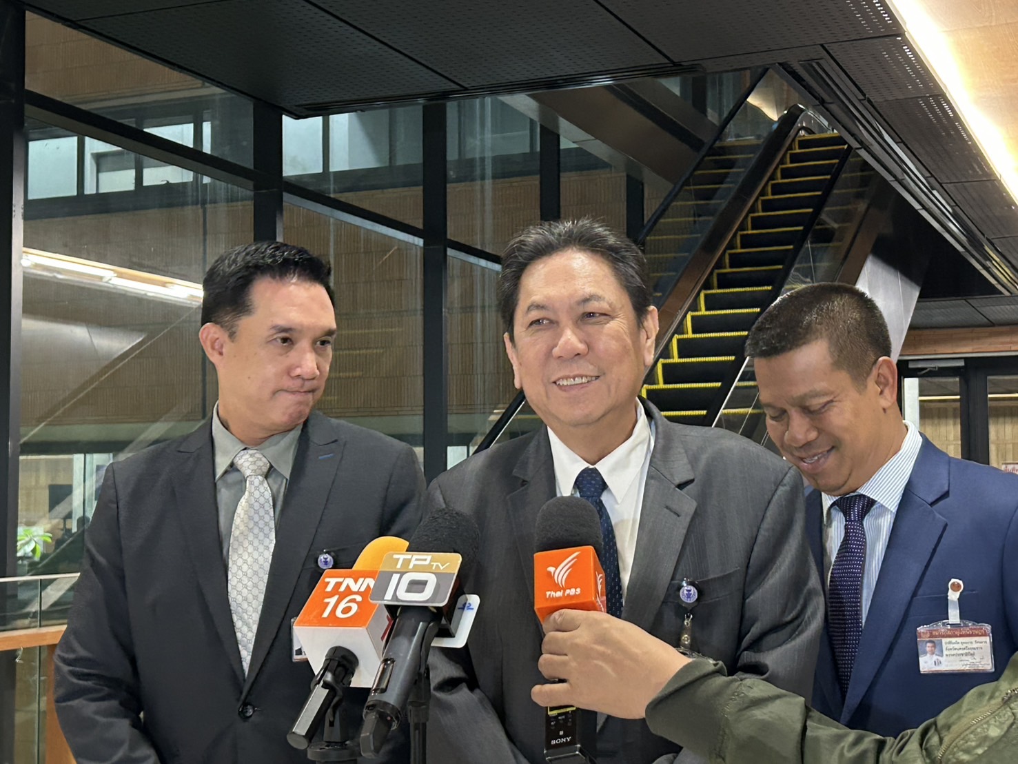 นายวิสุทธิ์ ไชยณรุณ สมาชิกสภาผู้แทนราษฎร (สส.) แบบบัญชีรายชื่อ และประธาน สส.พรรคเพื่อไทย ให้สัมภาษณ์กรณีศาลรัฐธรรมนูญนัดฟังคำวินิจฉัยกรณีคลิปเสียงสนทนาระหว่าง น.ส.แพทองธาร ชินวัตร
