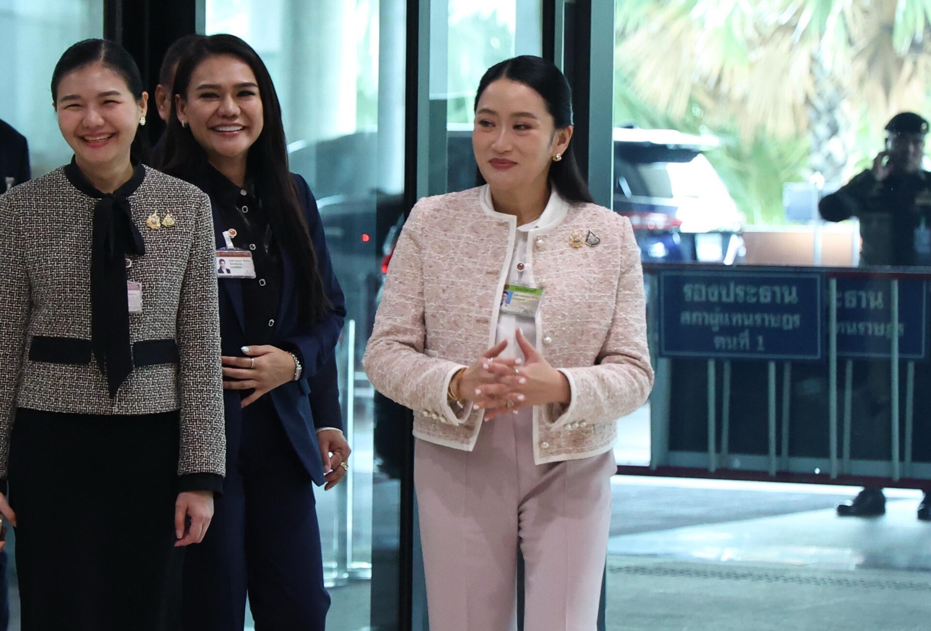 15 ส.ค. 2568 – เมื่อเวลา 10.10 น. ที่อาคารรัฐสภา น.ส.แพทองธาร ชินวัตร นายกรัฐมนตรีและรมว.วัฒนธรรม ในฐานะหัวหน้าพรรคเพื่อไทย เดินทางเข้าอาคารรัฐสภา ด้วยสีหน้ายิ้มแย้ม เพื่อรับฟังและให้กำลังใจ สส.ในการพิจารณาร่างพระราชบัญญัติ (พ.ร.บ.) งบประมาณรายจ่ายประจำปีงบประมาณ พ.ศ. 2569 วาระ 2 และวาระ 3 ซึ่งเป็นการพิจารณาวันสุดท้ายและจะมีการลงมติ โดยมีรัฐมนตรีและ สส.ของพรรคเพื่อไทย รอต้อนรับ ขณะที่ น.ส.แพทองธาร ไม่ให้ได้สัมภาษณ์สื่อมวลชนทั้ง 3 วันที่เดินทางเข้ารัฐสภา