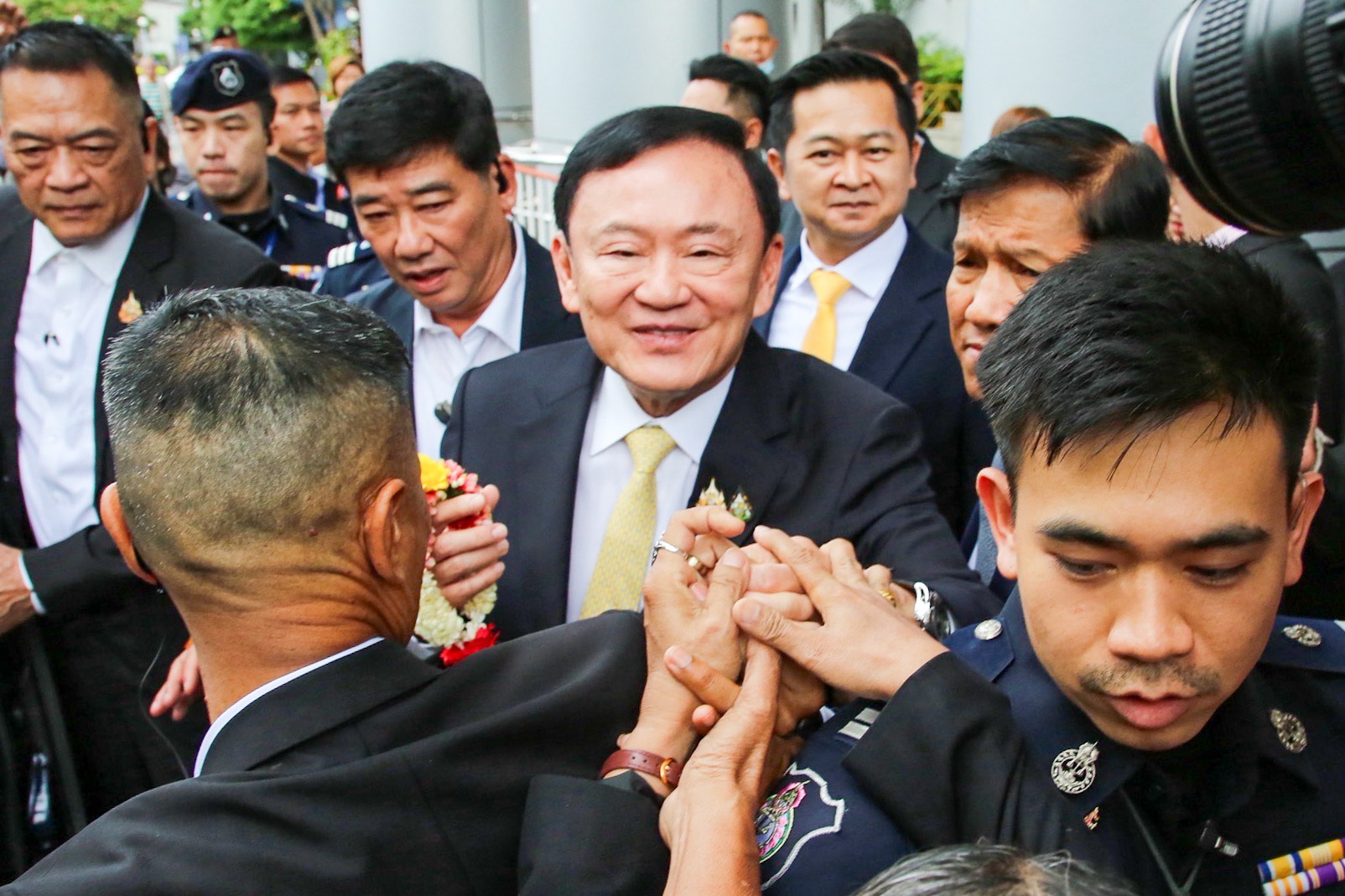 22 ส.ค. 2568 – ที่ศาลอาญา ถนนรัชดาภิเษก ภายหลังศาลอ่านคำพิพากษายกฟ้อง นายทักษิณ ชินวัตร อดีตนายกรัฐมนตรี ในคดีดูหมิ่นสถาบันตามประมวลกฎหมายอาญามาตรา 112 และความผิดเกี่ยวกับพ.ร.บ.คอมพิวเตอร์ พ.ศ.2560 นั้น นายทักษิณเดินออกจากศาล พร้อมทำความเคารพพระบรมฉายาลักษณ์ที่หน้าทางเข้าศาลอาญา พร้อมยิ้มเเย้มคอบคำถามสื่อว่า “ยกฟ้อง ยกฟ้อง” ก่อนเดินขึ้นรถยนต์ออกไป