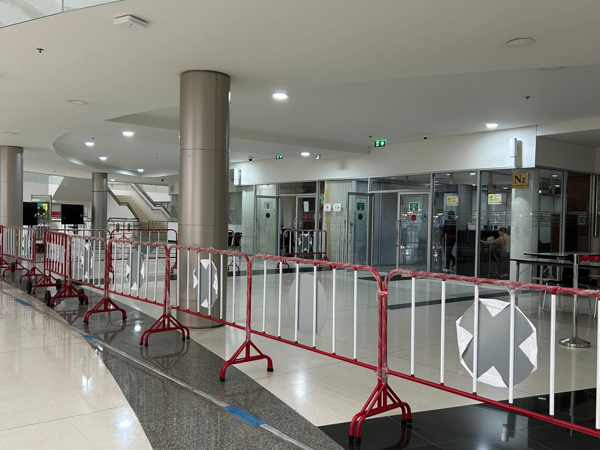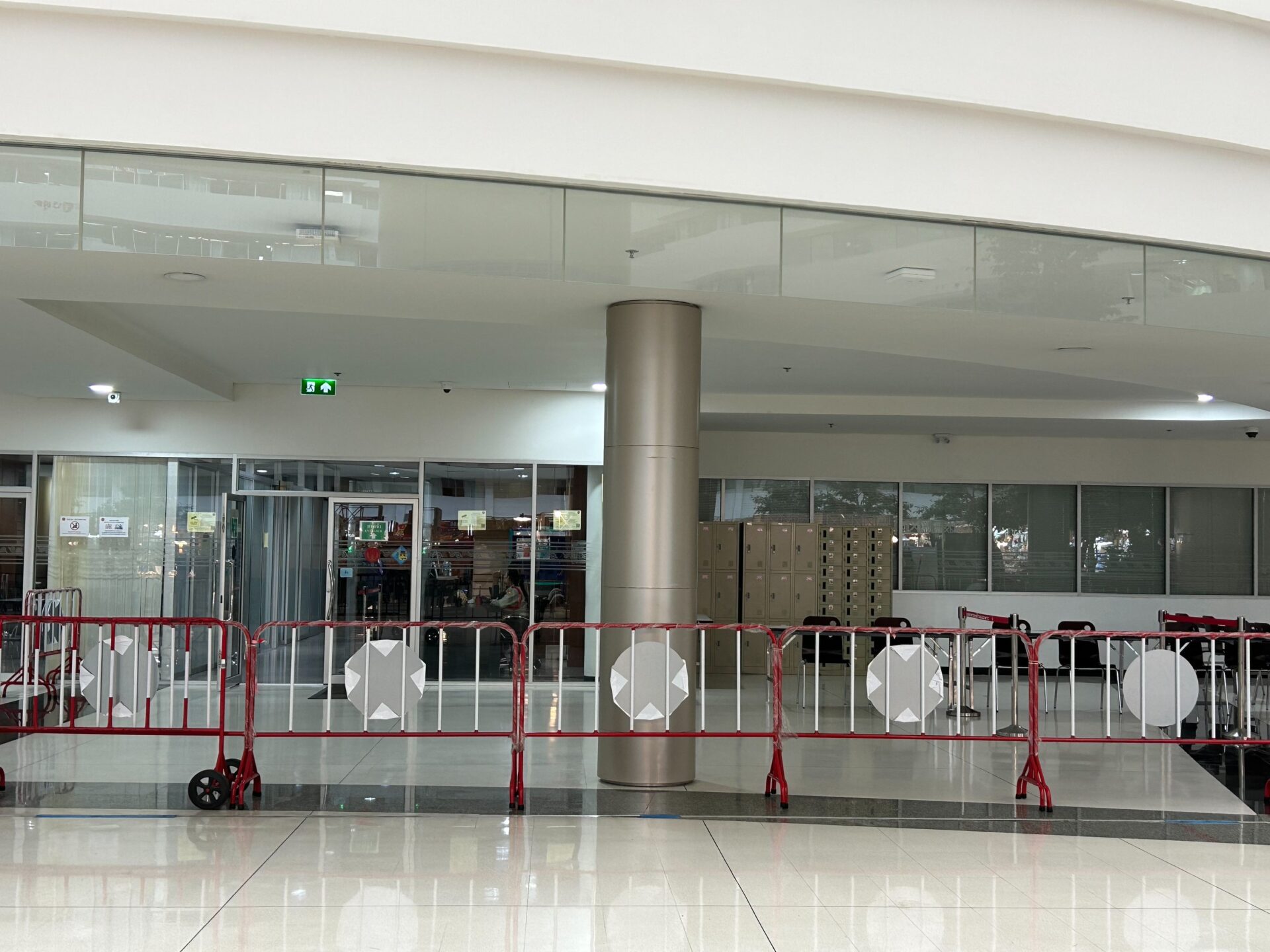 บรรยากาศที่สำนักงานศาลรัฐธรรมนูญ ในช่วงบ่ายวันนี้ เจ้าหน้าที่ได้จัดเตรียมสถานที่ โดยนำรั้วเหล็กมากั้นเป็นแนวระหว่างพื้นที่สำหรับสื่อมวลชน ทางเข้า-ออกเจ้าหน้าที่ของสำนักงานศาลรัฐธรรมนูญ และพื้นที่ผู้เกี่ยวข้อง คู่กรณีที่จะมาเข้ารับฟังคำวินิจฉัย