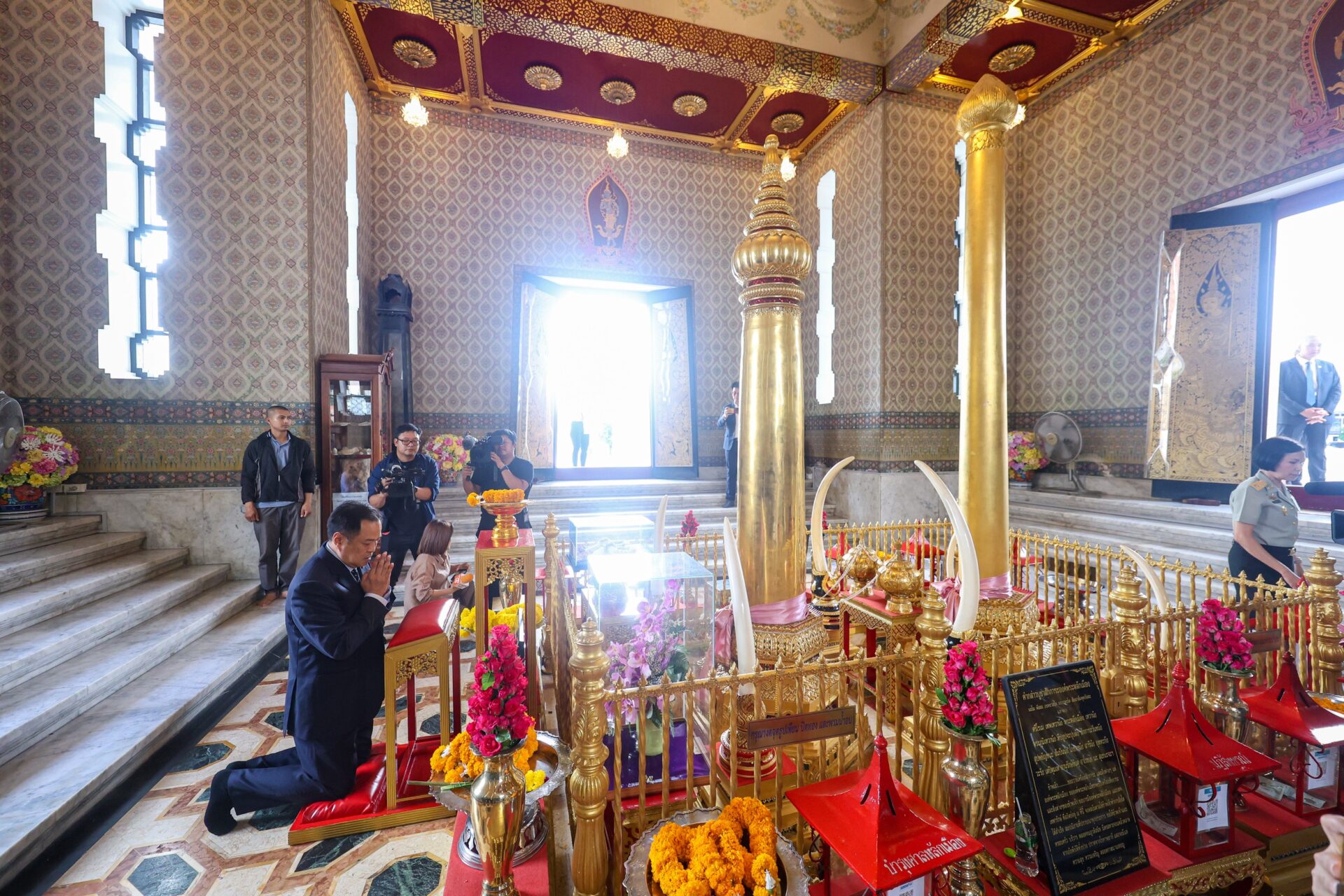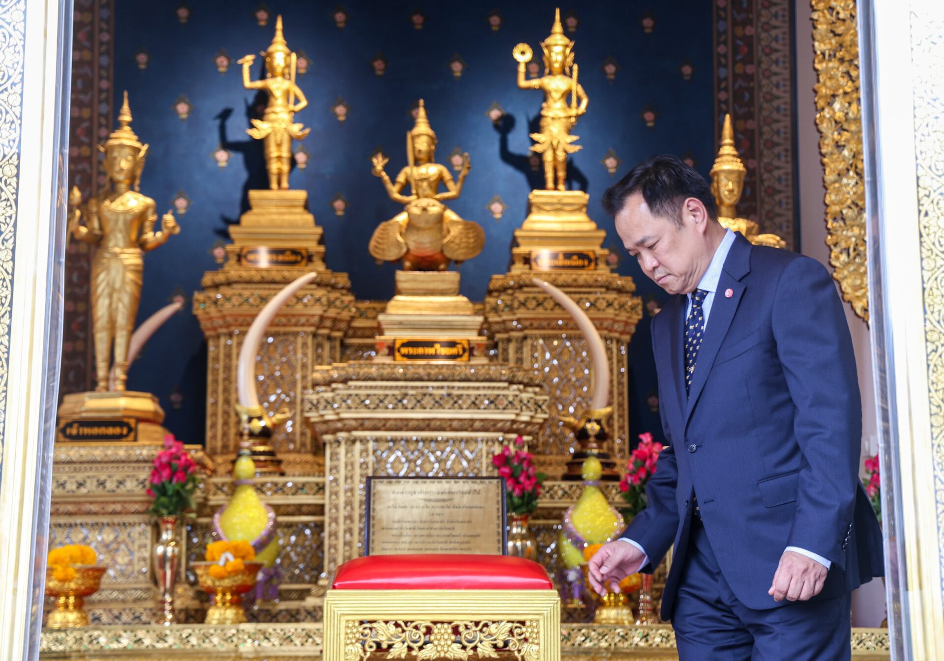 "อนุทิน" สักการะสิ่งศักดิ์สิทธิ์คู่บ้านคู่เมือง ไหว้ศาลหลักเมือง - วัดพระแก้ว ก่อนนำรายชื่อครม. ขึ้นทูลเกล้าฯ วันนี้ บอกเสร็จสิ้นภารกิจไปอีกเปราะ ขณะ "บิ๊กเล็ก" ว่าที่ รมว.กลาโหม รอรับ พลาดลื่นคะมำที่บันได