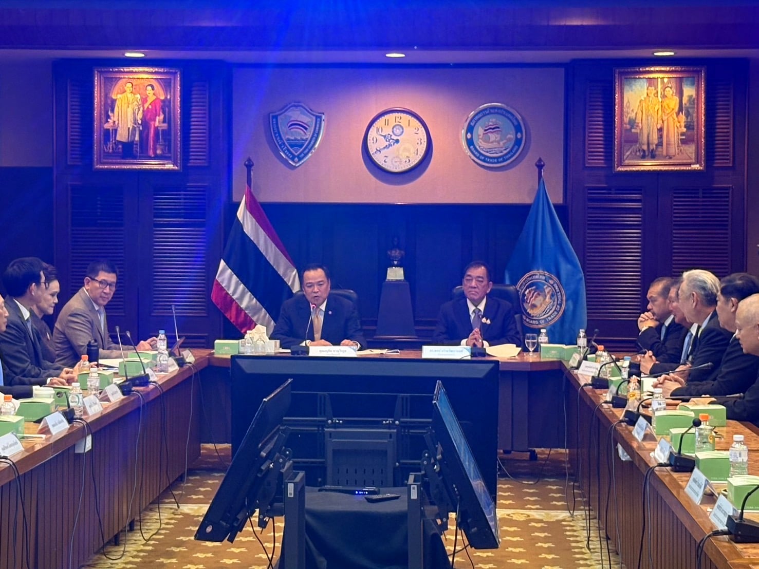 18 ก.ย.2568 - ที่หอการค้าไทยและสภาหอการค้าแห่งประเทศไทย นายอนุทิน ชาญวีรกูล นายกรัฐมนตรี เป็นประธานประชุมหารือเพื่อแก้ไขปัญหาเศรษฐกิจ ระหว่างคณะรัฐบาล และคณะกรรมการหอการค้าไทยและสภาหอการค้าแห่งประเทศไทย โดยมีนายเอกนิติ นิติทัณฑ์ประภาศ ว่าที่รองนายกรัฐมนตรีและรมว.การคลัง