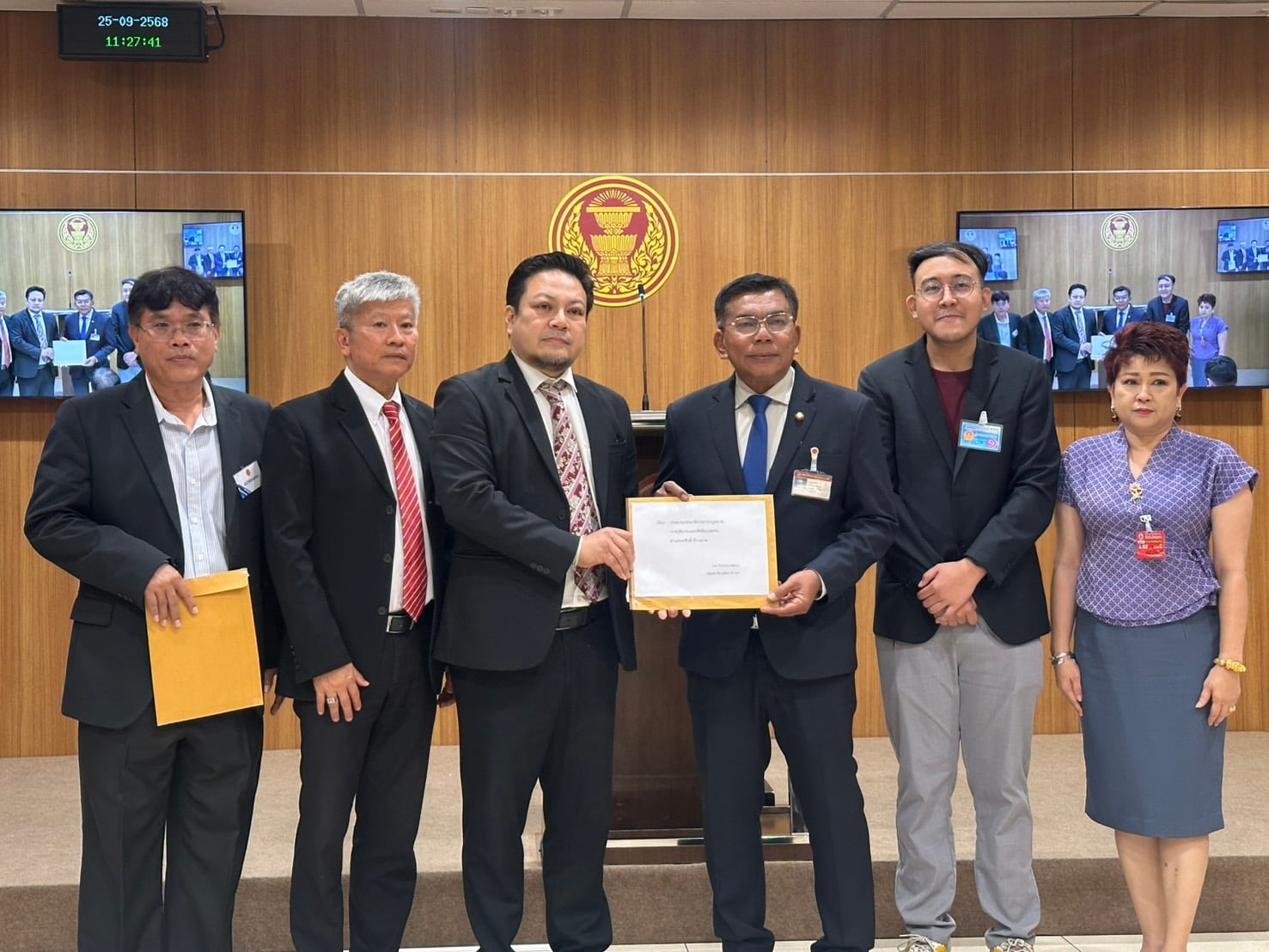25 ก.ย.2568 - ที่รัฐสภา นายกมลศักดิ์ ลีวาเมาะ สส.นราธิวาส พรรคประชาชาติ ในฐานะประธานคณะกรรมาธิการ (กมธ.) การกฎหมาย การยุติธรรม และสิทธิมนุษยชน สภาผู้แทนราษฎร รับหนังสือจากนายธนวัฒน์ ศรีสุข ตัวแทนกลุ่ม สว.สำรอง เรื่อง ขอกรุณาให้ติดตามตรวจสอบกรณีคดีโกงฮั้วเลือกสมาชิกวุฒิสภา ปี 2567