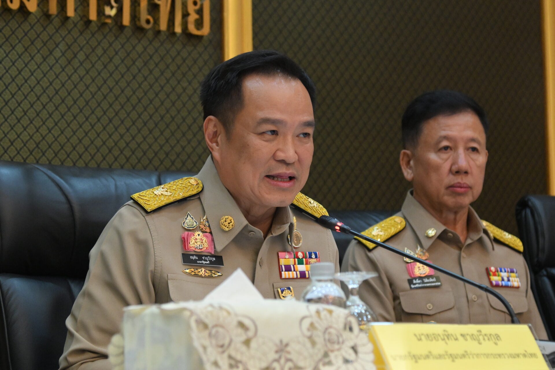 26 กันยายน 2568 - เวลา 14.50 น. ที่กระทรวงมหาดไทย นายอนุทิน ชาญวีรกูล นายกรัฐมนตรีและรัฐมนตรีว่าการกระทรวงมหาดไทย พร้อมด้วย นายทรงศักดิ์ทองศรี นายศักดิ์ดา วิเชียรศิลป์ และนางสาวศศิธร กิตติธรกุล รัฐมนตรีช่วยว่าการกระทรวงมหาดไทย เข้ากระทรวงมหาดไทยวันแรกหลังที่นายอนุทิน เปลี่ยนรัฐบาล เป็นนายกรัฐมนตรีและรัฐมนตรีว่าการกระทรวงมหาดไทย เข้ารับตำแหน่งอย่างเป็นทางการ เพื่อมอบนโยบาย โดยมีนายอรรถษิษฐ์ สัมพันธรัตน์ ปลัดกระทรวงมหาดไทย และข้าราชการระดับสูงให้การต้อนรับ
