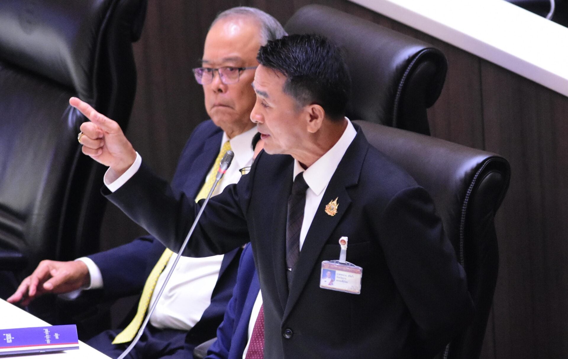 ขอยกตัวอย่างหายนะด้านประชาธิปไตย ระบบเลือกตั้ง ไม่ว่าจะเป็นสมาชิกวุฒิสภา ระบบ สส.จะบิดเบี้ยว ประชาชนไม่มีสิทธิ์ตัดสินใจ 1,000 2,000 อื้อไปหมด เหมายกเข่ง ซื้อยกหน่วย เหล่านี้คือสิ่งที่รัฐธรรมนูญสีน้ำเงินต้องระวัง แต่ตนเชื่อว่าจะไม่ผ่านประชามติ ส่วนหายนะเรื่องความโปร่งใสและหลักนิติธรรมคนที่เข้ามาดำรงตำแหน่งมีลักษณะผูกขาด ตัดต่อมาจากกลุ่มและพวก ถ้าขาดความโปร่งใสและหลักนิติธรรม ทำเพื่อพวกถือเป็นหายนะ รัฐมนตรีบางท่านบางคนมีแผล มีกรรมเก่าเข้ามาบริหารประเทศในขณะนี้ คดีต่างๆ เยอะแยะไปหมด ส่วนหายนะในเรื่องความสามารถ การแข่งขันและการบริหารประเทศ เรื่องนี้ขมวดแล้วจะทำไม่ดี ทำไม่ได้ ทำได้ก็ทำเพื่อประโยชน์ใคร นโยบายที่ท่านแถลงมาอย่างเช่นเรื่องแลนด์บริดจ์ พลังงานไฟฟ้าชุมชน ทำไมจะมาเริ่มทำขณะนี้ หน่วยงานที่เกี่ยวข้องไม่เร่งรัดในช่วงที่เราเป็นรัฐบาลอยู่สองปีที่ผ่านมา ไปติดขัดตรงไหน การไฟฟ้าส่วนภูมิภาคและการไฟฟ้านครหลวง มันเป็นเพราะอะไร