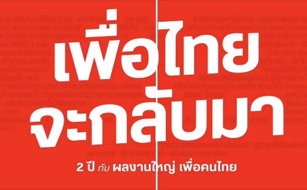 ในระยะเวลา 2 ปี พรรคเพื่อไทยในฐานะแกนนำในการจัดตั้งรัฐบาล รัฐบาลที่มาจากการเลือกตั้งซึ่งมีอายุเพียงครึ่งเทอมนั้น พรรคเพื่อไทยขอยืนยันในการรักษาคำมั่นของพรรคเพื่อไทยที่มีต่อพี่น้องประชาชน ในการเข้าผลักดันและดำเนินนโยบายภายใต้เวลาที่จำกัด และท่ามกลางอุปสรรคและวิกฤตการณ์ทั้งในและนอกประเทศ ซึ่งได้ดำเนินนโยบายและแก้ไขอย่างเต็มความสามารถ