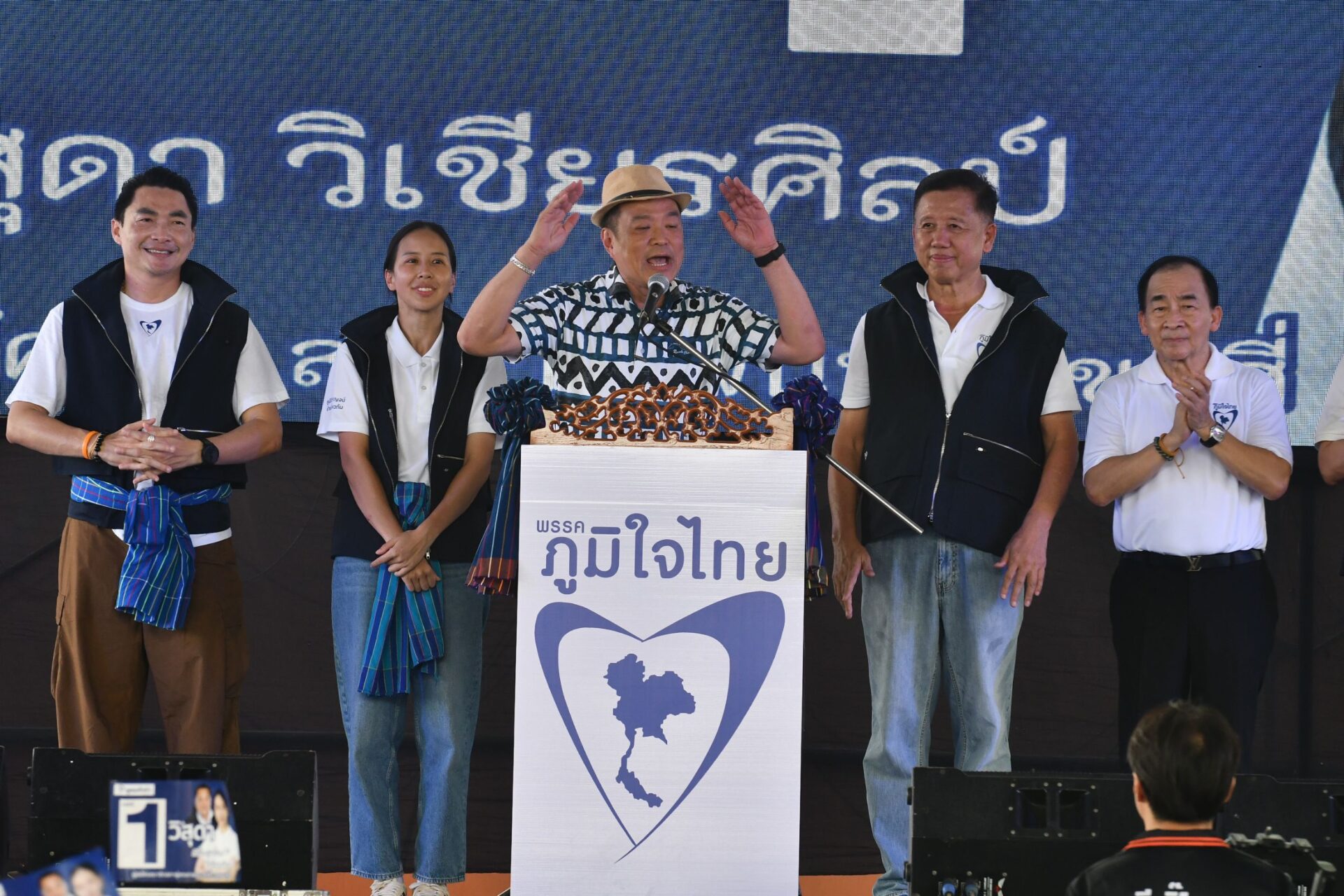 12 ต.ค.2568 – ที่ศูนย์จำหน่ายและแสดงสินค้าผลิตภัณฑ์ หนึ่งตำบลหนึ่งผลิตภัณฑ์ (โอท็อป) อ.บ่อพลอย จ.กาญจนบุรี นายอนุทิน ชาญวีรกูล นายกรัฐมนตรี และรมว.มหาดไทย ในฐานะหัวหน้าพรรคภูมิใจไทย พบประชาชน และปราศรัยหาเสียงช่วย น.ส.วิสุดา วิเชียรศิลป์ ผู้สมัครรับเลือกตั้งซ่อมสส.เขต 4 พรรคภูมิใจไทย โดยมีรัฐมนตรี แกนนำและสส.ภูมิใจไทย อาทิ นายชาดาไทยเศรษฐ์ สส. อุทัยธานี พรรคภูมิใจไทย ร่วมเวทีปราศรัยด้วย