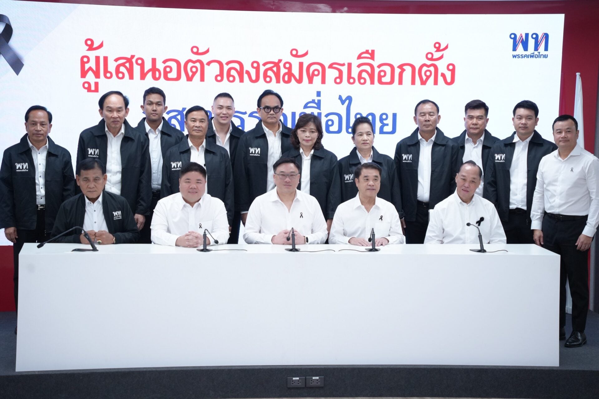 21 พ.ย.2568 - เมื่อเวลา 10.30 น. ที่พรรคเพื่อไทย (พท.) นายจุลพันธ์ อมรวิวัฒน์ สส.เชียงใหม่ และหัวหน้าพรรค พท. พร้อมด้วย นายสรวงศ์ เทียนทอง สส.สระแก้วและรองหัวหน้าพรรคฯ นายพงษ์กวิน จึงรุ่งเรืองกิจ รองหัวหน้าพรรค นายสุริยะ จึงรุ่งเรืองกิจ ผู้อำนวยการเลือกตั้งพรรค ร่วมเปิดตัวผู้สมัครสส. เป็นรอบที่ 6 โดยแบ่งเป็นผู้เสนอตัวลงสมัคร สส.แบบแบ่งเขต ของจังหวัดสมุทรปราการจำนวน 8 คน และบัญชีรายชื่อจำนวน 3 คน