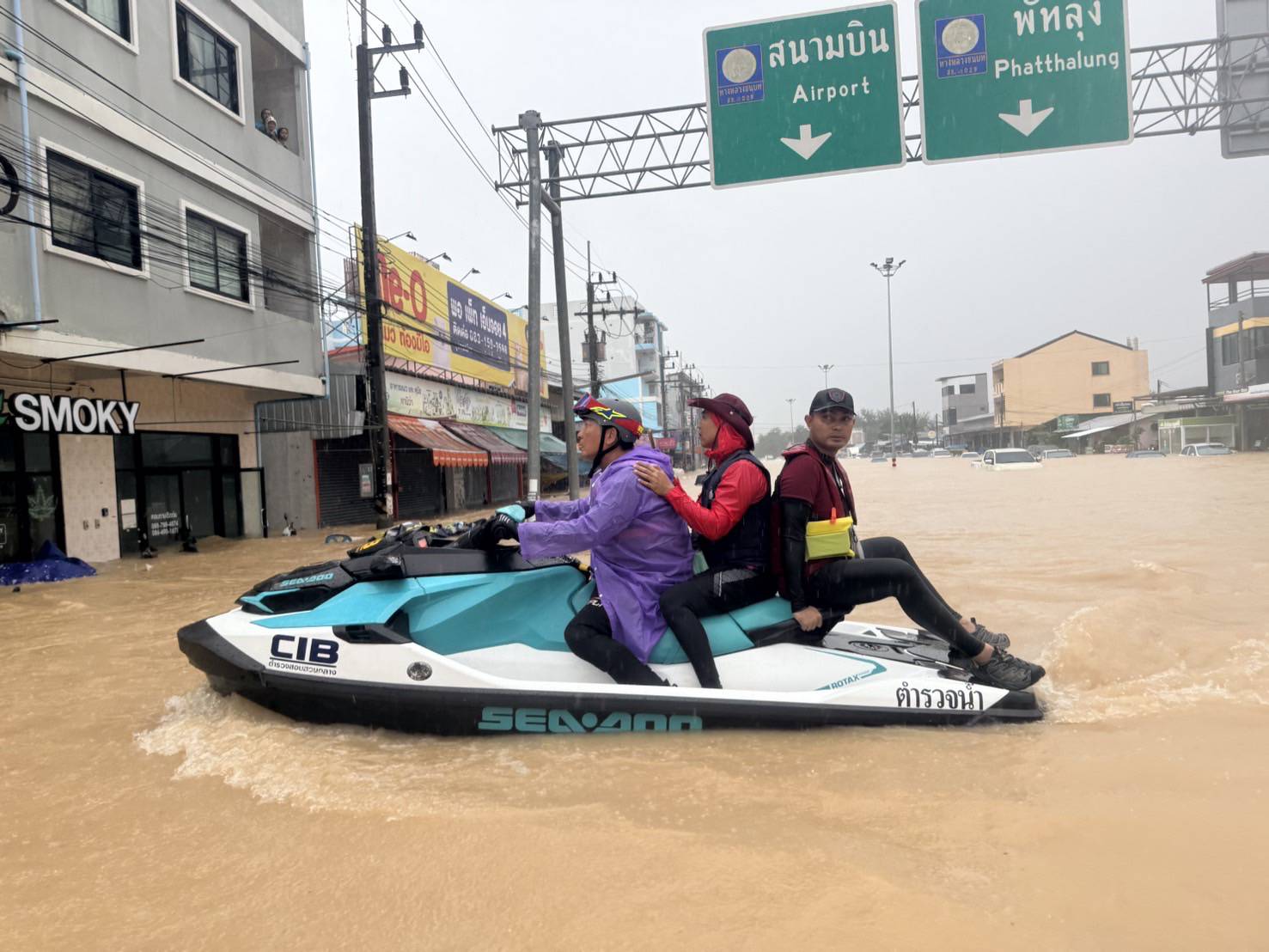 ส่วนที่มีภาพของประชาชนตะโกนขอความช่วยเหลือบนหลังคาบ้าน จะเข้าดำเนินการช่วยเหลือได้เมื่อไหร่นั้น ร้อยเอก ธรรมนัส กล่าวว่า วันนี้จะมีการบัญชาการให้เป็นเรื่องเป็นราว และเป็นรูปธรรม ที่จะดำเนินการเพื่อเข้าช่วยเหลือ พร้อมกับยอมรับว่า ปัญหาที่เกิดขึ้นในวันนี้เนื่องจาก คาดการณ์ว่า น้ำจากอำเภอสะเดา จังหวัดสงขลา ซึ่งเกิดฝนตกหนักมาสมทบกับน้ำในพื้นที่อำเภอหาดใหญ่ที่มีจำนวนมากอยู่แล้ว และน้ำทุกมุมไหลลงมารวมกันทั้งหมด ทำให้เกิดปริมาณน้ำเพิ่มขึ้นสูง และมีความเชี่ยว และลึก ส่งผลให้เรือท้องแบนเข้าไปช่วยเหลือไม่ได้ จึงได้มีการเพิ่มเรือหางยาวของชาวประมงเข้าไปช่วย และเรือจากหน่วยบัญชาการสงครามพิเศษทางเรือ กองเรือยุทธการ หรือ หน่วยซีล พร้อมกับส่งเรือเจ็ตสกีแรงม้าสูงเข้าไปช่วยเพิ่มเติม ซึ่งจะระดมช่วยเหลือในทุกจุด