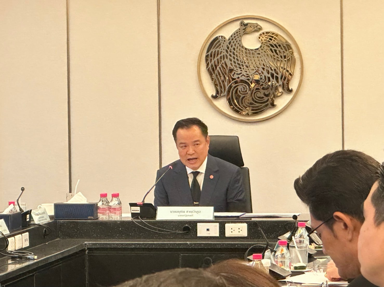 27 พ.ย.2568 - ที่กระทรวงการคลัง นายอนุทิน ชาญวีรกูล นายกรัฐมนตรีและรัฐมนตรีว่าการกระทรวงมหาดไทย เป็นประธานการประชุมบูรณาการการช่วยเหลือ เยียวยา และฟื้นฟูผู้ประสบอุทกภัยภาคใต้ โดยมี นายเอกนิติ นิติทัณฑ์ประภาศ รองนายกรัฐมนตรีและรมว.การคลัง น.ส.ตรีนุช เทียนทอง รมว.แรงงาน นายไชยชนก ชิดชอบ รมว.ดิจิทัลเพื่อเศรษฐกิจและสังคม นายภราดร ปริศนานันทกุล รัฐมนตรีประจำสำนักนายกรัฐมนตรี และหน่วยงานที่เกี่ยวข้องเข้าร่วม