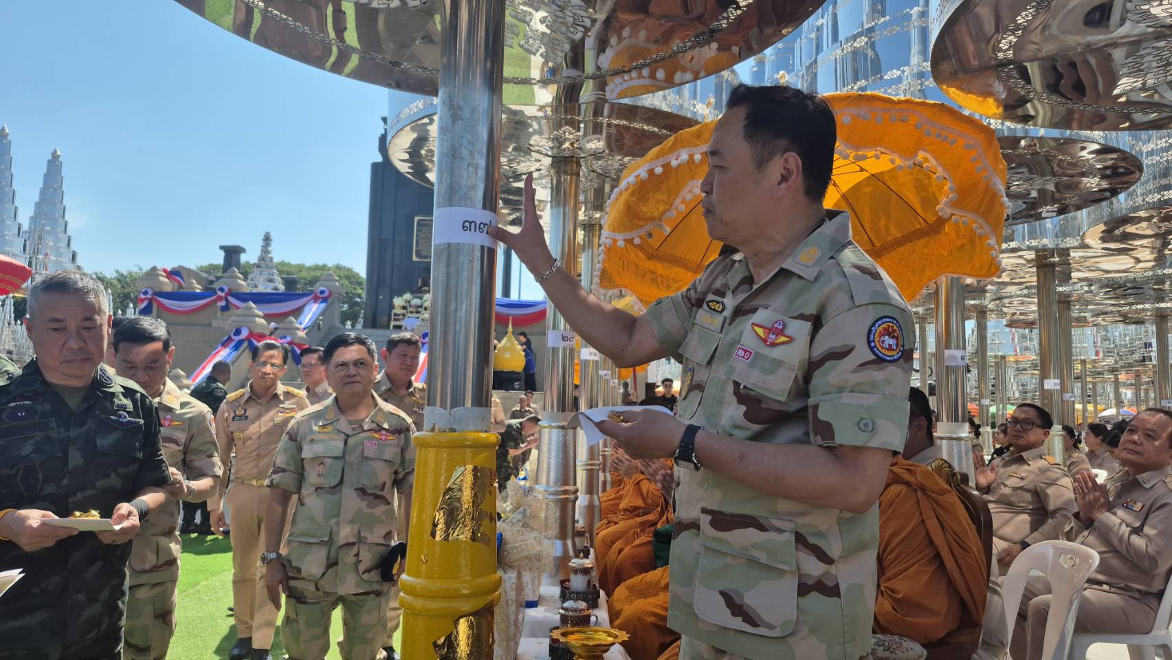 29 ธันวาคม 2568 - เมื่อเวลา 10.00 น. ที่วงเวียนรัชกาลที่ 1 อ.เมือง จ.บุรีรัมย์นายอนุทิน ชาญวีรกุล นายกรัฐมนตรี และ รมว.มหาดไทย พร้อม พล.ท.อดุลย์ บุญธรรมเจริญ รมช.กลาโหม น.ส.ไตรศุลี ไตรสรณกุล เลขาธิการนายกรัฐมนตรี พล.อ.ชัยพฤกษ์ ด้วงประพัฒน์ เสนาธิการทหารบก และผู้บริหารส่วนราชการ ร่วมพิธีปิดทองฐานฉัตร 9 ชั้น และยอดฉัตร ต้นหมายเลข 37 พระบรมราชานุสาวรีย์พระบาทสมเด็จพระพุทธยอดฟ้าจุฬาโลกมหาราช