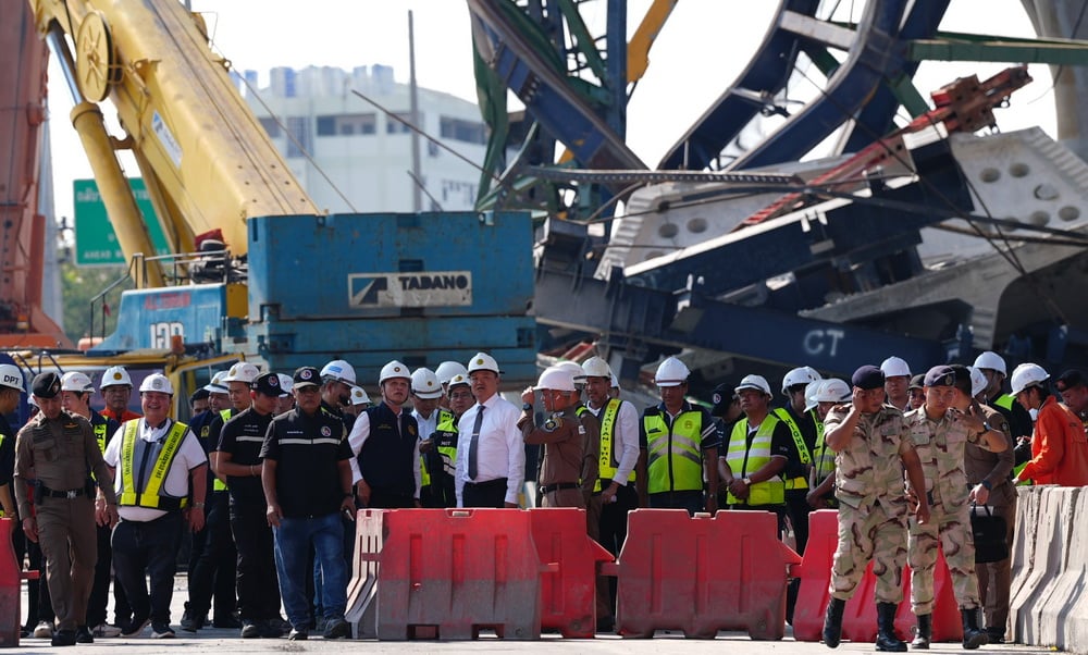 นายกฯ ลงพื้นที่พระราม 2 จุดเครนถล่ม ขณะที่เจ้าหน้าที่รายงานสถานการณ์ เผย เคลียร์พื้นที่แล้วเสร็จใน 14 วัน ส่วนกรมทางหลวงตั้งคณะกรรมการตรวจสอบข้อเท็จจริงตามคำสั่งการนายกรัฐมนตรีแล้ว คาดได้ข้อสรุปใน 7 วัน