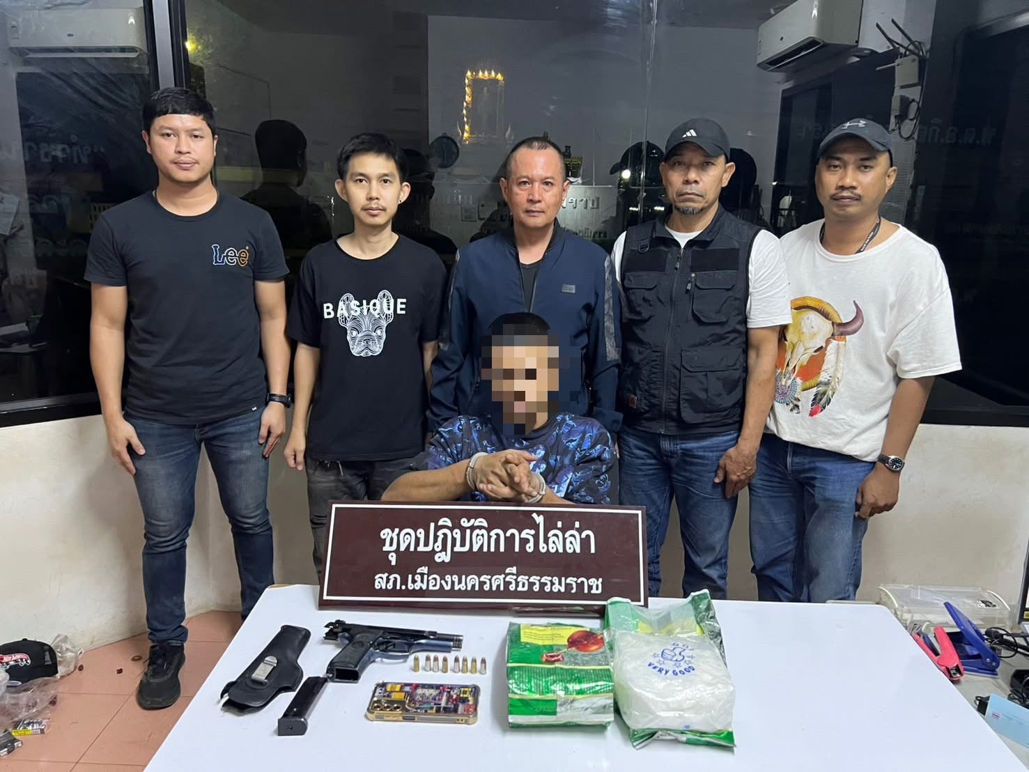 สำหรับคดีดังกล่าว ผู้สื่อข่าวรายงานว่า เมื่อวันที่ 19 มกราคม 2569 เวลาประมาณ 17.20 น. เจ้าหน้าที่ชุดไล่ล่า สภ.เมืองนครศรีธรรมราช ได้จับกุมนายจักรกฤษณ์ เดชเดโช หรือ “ซัน ทุ่งจีน” อายุ 30 ปี บริเวณซอยทุ่งจีน ถนนชลประทาน 4 ขวา ตำบลนาเคียน อำเภอเมือง จังหวัดนครศรีธรรมราช พร้อมของกลางยาไอซ์จำนวน 2 กิโลกรัม อาวุธปืนพกขนาด 9 มม. 1 กระบอก กระสุน 8 นัด รถยนต์เก๋งยี่ห้อ MG 5 สีแดง โทรศัพท์มือถือ 1 เครื่อง และผลตรวจปัสสาวะพบสารเสพติดในร่างกาย