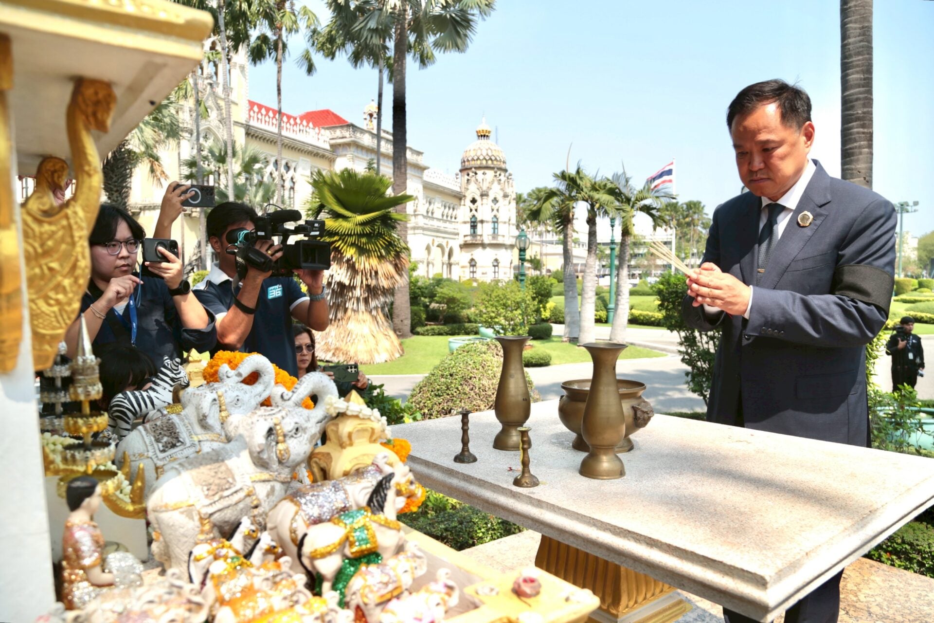 9 ก.พ. 2569 – เมื่อเวลา 12.05 น. ที่ทำเนียบรัฐบาล นายอนุทิน ชาญวีรกูล นายกรัฐมนตรีและรมว.มหาดไทย เดินทางเข้าปฏิบัติหน้าที่ทำเนียบรัฐบาล จากนั้นเวลา 12.09 น. นายอนุทิน เดินลงจากตึกไทยคู่ฟ้า มาสักการะศาลพระภูมิเจ้าที่และศาลตาศาลยาย และสิ่งศักดิ์สิทธิ์ประจำทำเนียบรัฐบาล