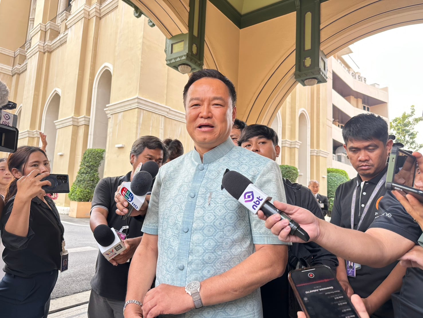 12 ก.พ.2569 - ที่ตึกนารีสโมสร ทำเนียบรัฐบาล นายอนุทิน ชาญวีรกูล นายกรัฐมนตรีและรัฐมนตรีว่าการกระทรวงมหาดไทย ให้สัมภาษณ์ถึงปัญหาชายแดนที่ทหารเหยียบกับระเบิดที่จังหวัดศรีสะเกษ ได้กำชับให้กระทรวงการต่างประเทศทำหนังสือประท้วงอย่างไรหรือไม่ ว่า มันเกิดอยู่ในพื้นที่ที่เราควบคุม ไม่ได้เกิดจากการปะทะ ซึ่งในพื้นที่ที่เราควบคุม ก็ได้มีการเก็บกู้ทุ่นระเบิดอยู่ จึงอาจมีเหตุที่ไม่ควรเกิดขึ้นได้ ดังนั้นต้องเพิ่มความระมัดระวัง เพราะพื้นที่ที่เรากลับไปควบคุมยังมีความเสี่ยงอยู่ ซึ่งการเก็บกู้ทุนระเบิดอาจจะยังทำได้ไม่หมด โดยเส้นทางที่ทหารของเราเดินออกไปก็ต้องมีการกำหนดเส้นทางที่ชัดเจนว่าอย่าออกนอกแนว อย่างตอนที่ตนไปลงพื้นที่ปราสาทตาควาย จุดช่องจอม เขาก็ไม่ให้เดินออกนอกแนว ขีดเส้นไว้เลยเพราะยังมีความเสี่ยง ยังมีทุ่นระเบิดเก่าวางอยู่ ดังนั้นนี่ไม่ใช่เรื่องของการปะทะกัน