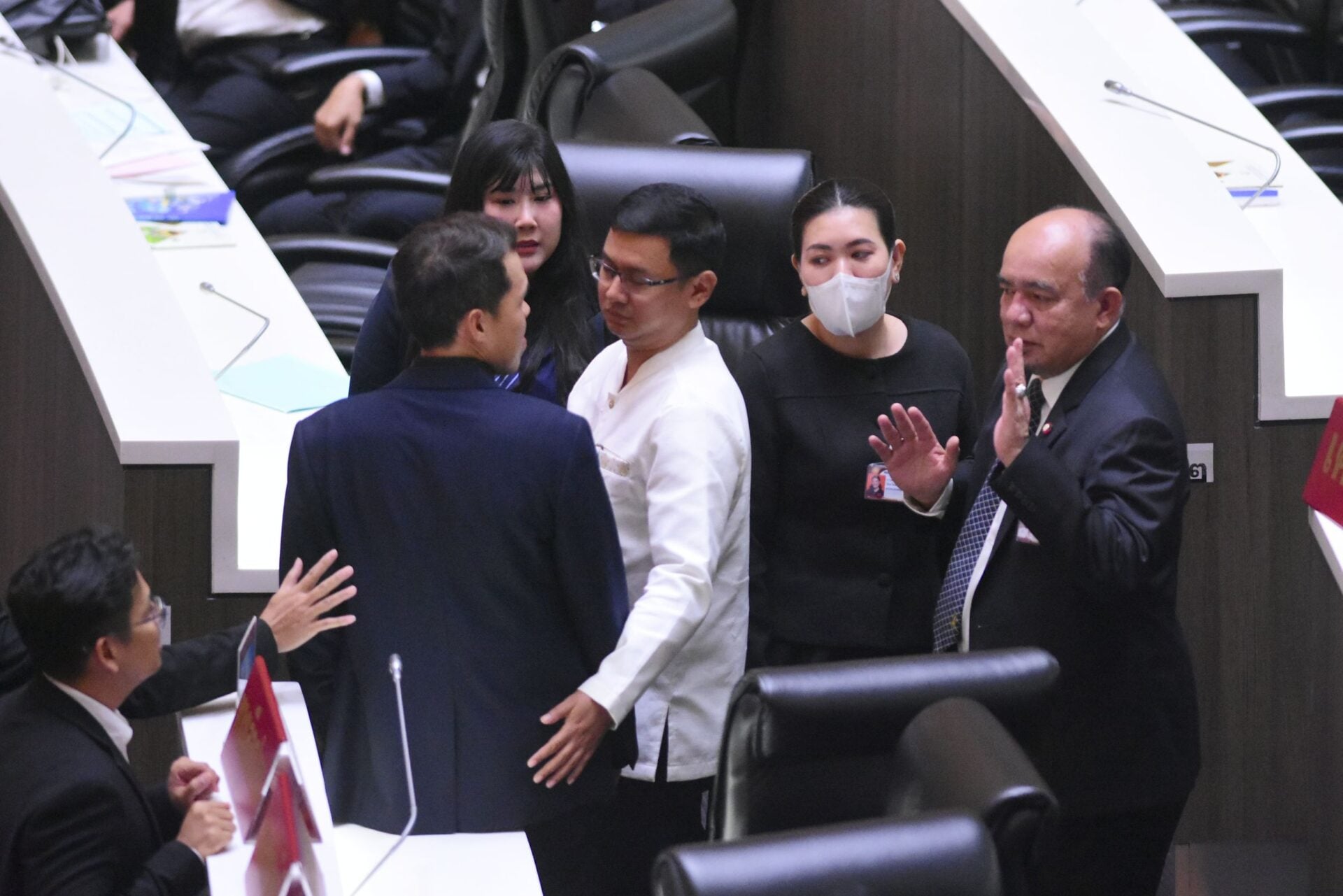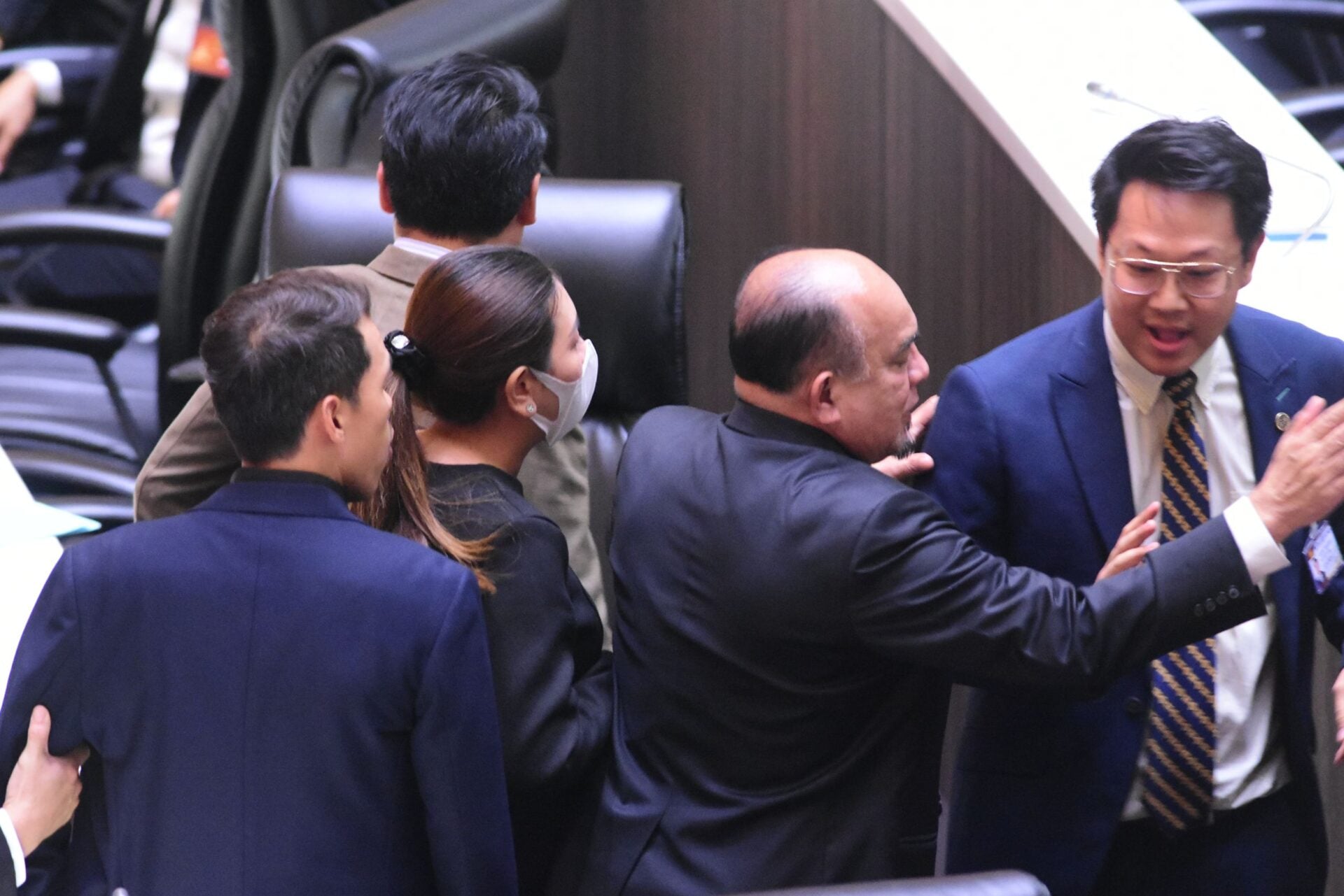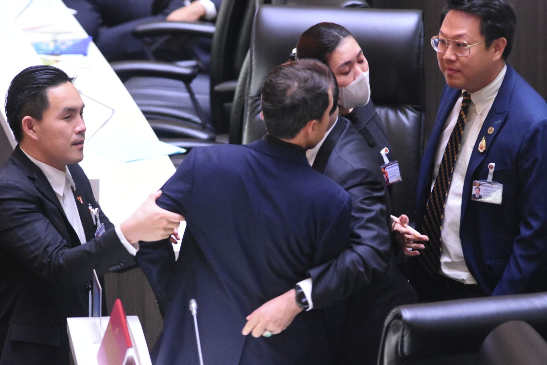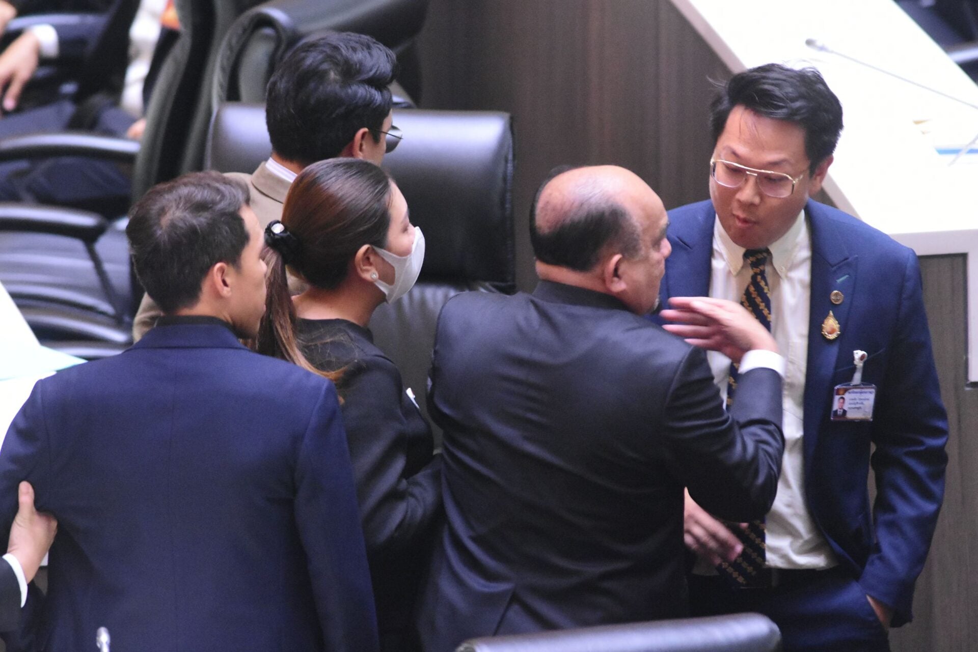 นายคริส กล่าวต่อว่า ไม่ว่าใครจะเป็น สส.มากี่ครั้ง ก็เป็นสิทธิของท่าน และตนก็เป็น สส.ที่มีสิทธิเท่าเทียมพรรคประชาชนเหมือนกัน ย่อมมีสิทธิที่จะประท้วงและให้ประธานทำตามข้อบังคับ ตนเห็นว่าการเมืองที่สร้างสรรค์สามารถเล่นตามกติกาได้ พูดคุยกันได้ แต่ถ้ามีลักษณะปรี่เข้ามานอกรอบหลังอภิปราย ตนรู้สึกถึงการคุกคามทางร่างกายและเสรีภาพ เพราะมี สส.พรรคประชาชนมาจับแขนตนด้วย จึงบอกว่าอย่าจับ ทำให้ตนตกใจ เพราะ สส.พรรคประชาชนหลายคน ตนก็รู้จัก ทั้งนายปกรณ์วุฒิและนายภัณฑิล ตนก็รู้จักส่วนตัว แต่ตนไม่รู้ว่าเป็น สส.ก่อนตน เข้ามาทำอะไร เขาอาจจะโกรธ ซึ่งนายพีรพล กนกวลัย สส.บัญชีรายชื่อ พรรคเศรษฐกิจ ก็อยู่ด้านหน้า และมีนายซูการ์โน มะทา สส.ยะลา พรรคประชาชาติ ยังบอกให้ตนนั่งลง แต่คนที่ไม่จบคือ สส.พรรคประชาชน