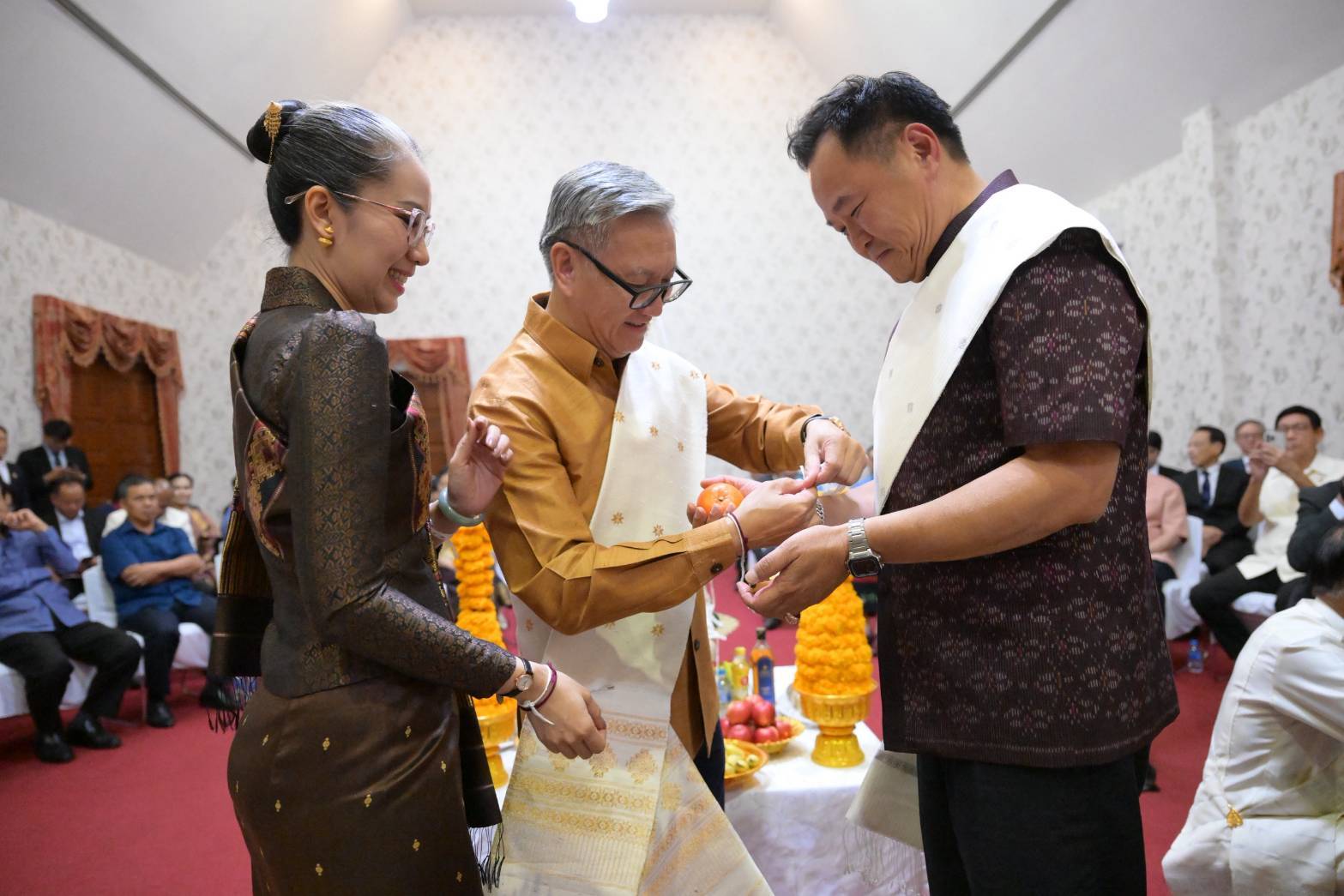 ทั้งนี้นายกฯ ได้มอบแจกันดอกไม้แสดงความยินดีแก่เอกอัครราชทูต สปป.ลาว ก่อนเข้าร่วมพิธีบายศรีสู่ขวัญ ณ ห้องโถงสโมสร ซึ่งเป็นพิธีสำคัญตามขนบธรรมเนียมลาว โดยมีพิธีสวดเรียกขวัญ การเจิมและทำน้ำมนต์ และผูกสายสิญจน์เพื่อความเป็นสิริมงคล