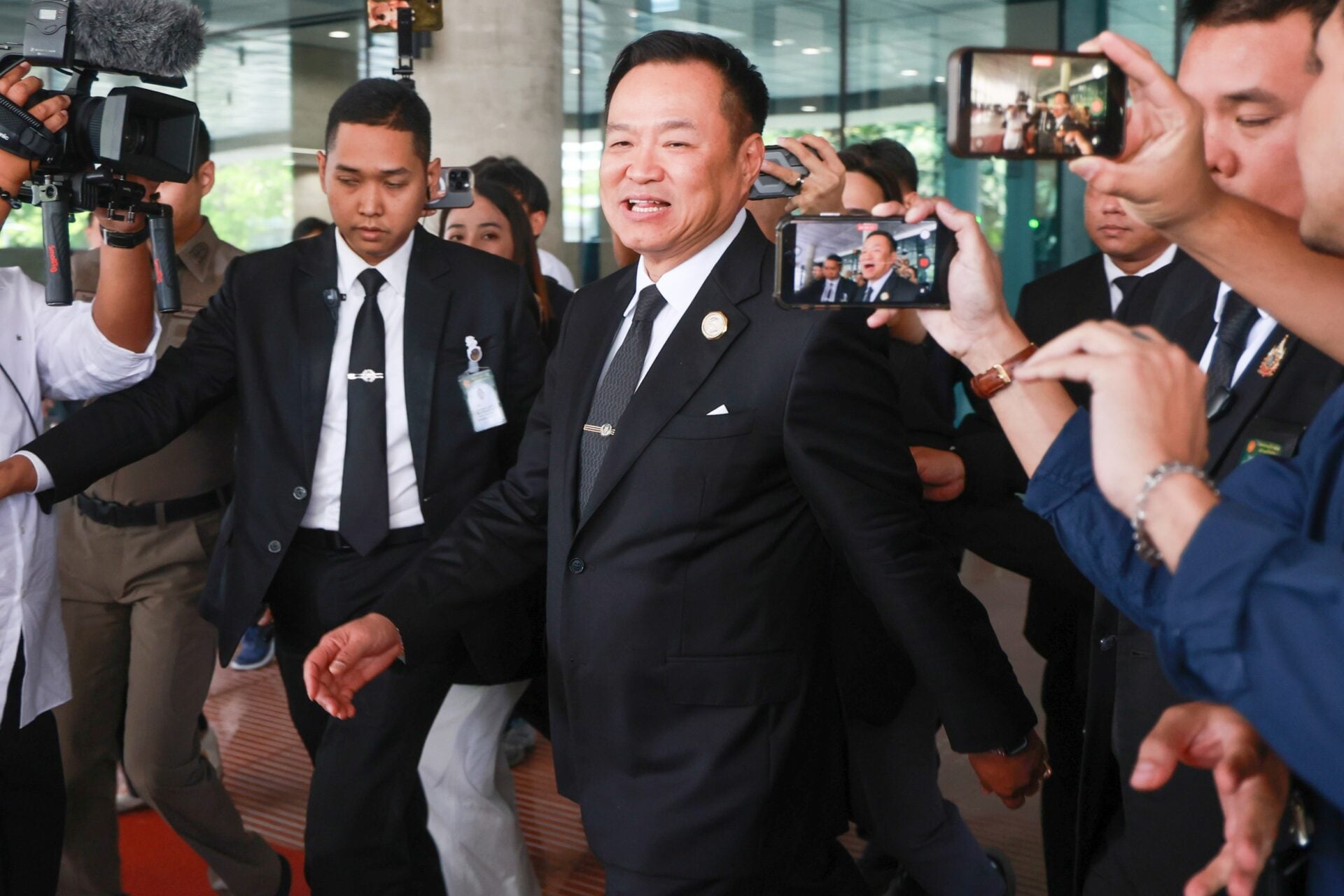 จากนั้น นายกรัฐมนตรีได้ขึ้นรถพร้อมลดกระจกลง ผู้สื่อข่าวจึงพยายามสอบถามอีกครั้งถึงการเดินเข้าไปทักทาย ร้อยเอกธรรมนัส พรหมเผ่า สส. บัญชีรายชื่อ พรรคกล้าธรรม แต่ นายอนุทิน ไม่ได้ตอบคำถาม ก่อนบอกกับสื่อมวลชน ว่า “car pools" โดยมี นายอรรษิษฐ์ สัมพันธรัตน์ ปลัดกระทรวงมหาดไทย ร่วมนั่งรถไปด้วย