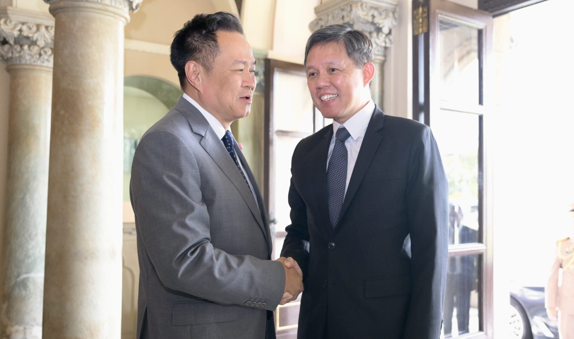 27 เม.ย.2569-ที่ห้องสีงาช้าง ตึกไทยคู่ฟ้า ทำเนียบรัฐบาล นายชาง ชุน ซิง รัฐมนตรีประสานงานด้านบริการภาครัฐ และรัฐมนตรีว่าการกระทรวงกลาโหมสาธารณรัฐสิงคโปร์ เข้าเยี่ยมคารวะ นายอนุทิน ชาญวีรกูล นายกรัฐมนตรีและรมว.มหาดไทย