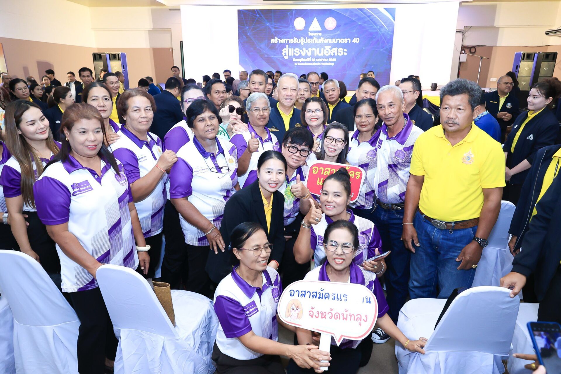 ด้าน นางมารศรี ใจรังษี เลขาธิการสำนักงานประกันสังคม กล่าวว่า สำนักงานประกันสังคมเข้าร่วมโครงการสร้างการรับรู้ประกันสังคมมาตรา40 สู่แรงงานอิสระ จังหวัดพัทลุงในวันนี้ โดยได้จัดบรรยายในหัวข้อ “สิทธิประโยชน์ประกันสังคมมาตรา 40 ที่แรงงานภาคอิสระพึงรับรู้” เพื่อประชาสัมพันธ์ความรู้ความเข้าใจเกี่ยวกับการคุ้มครองที่ผู้ประกันตนจะได้รับจากการสมัครเป็นผู้ประกันตนตามมาตรา 40 ซึ่งให้สิทธิประโยชน์สูงสุดถึง 5 กรณี ไม่ว่าจะเป็นกรณีเจ็บป่วย กรณีทุพพลภาพ กรณีเสียชีวิต กรณีชราภาพ และกรณีสงเคราะห์บุตร อีกทั้งได้จัดเวทีอภิปรายแลกเปลี่ยนประสบการณ์ด้านการประกันสังคมมาตรา 40 การออกร้านจำหน่ายสินค้าของเครือข่าย การฉีดวัคซีนไข้หวัดใหญ่ และตรวจสุขภาพป้องกันโรค รวมทั้งกิจกรรมอื่นๆ ของภาคีเครือข่ายประกันสังคม