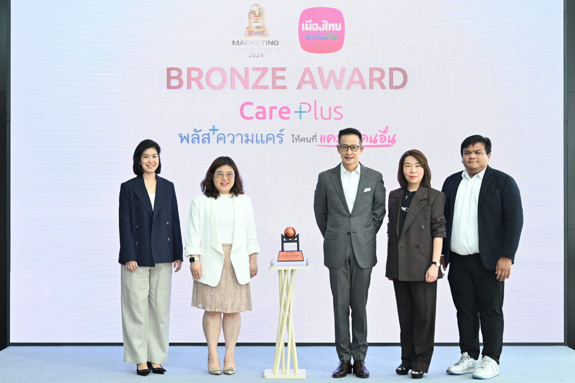 เมืองไทยประกันชีวิต สุดภาคภูมิใจ แคมเปญ “Care Plus พลัสความแคร์ให้คนที่แคร์แต่คนอื่น” คว้ารางวัลสุดยอดแคมเปญการตลาด หมวดแคมเปญการตลาดที่มีความเป็นเลิศด้านกลยุทธ์ ระดับ Bronze Award จากเวที Marketing Award of Thailand 2024 ตอกย้ำความโดดเด่นที่ตอบโจทย์ทั้งความคุ้มครองค่ารักษาโรคมะเร็ง และไตวายเรื้อรังที่คุณเลือกได้ คลายกังวลเรื่องค่ารักษาพยาบาล พร้อมช่วยให้เข้าถึงการรักษาด้วยนวัตกรรมที่ทันสมัย