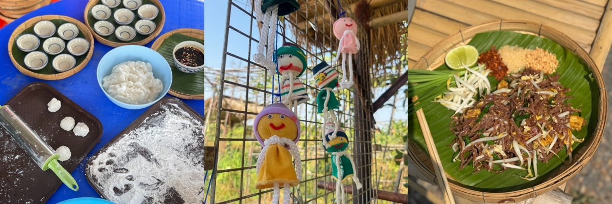 วัตถุดิบและสมุนไพรชุมชนที่นำมาแปรรูป กุยช่าย ตุ๊กตาสมุนไพร และผัดไทยเส้นกล้วย