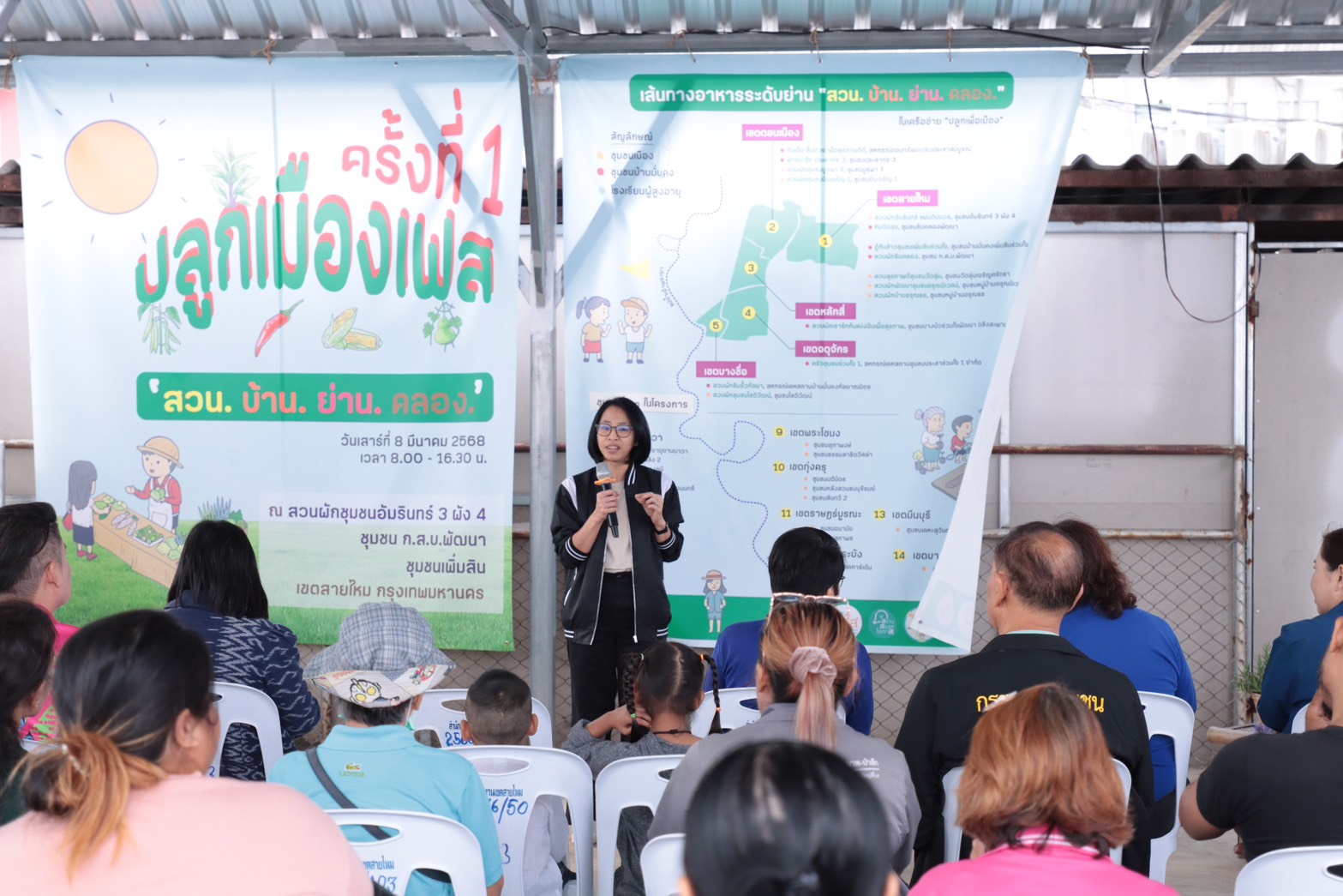 นางสาวเฉลิมศรี ระดากูล รองผู้อำนวยการ พอช. กล่าวว่า ความสำคัญของโครงการปลูกผักเพื่อเมือง เป็นมากกว่าการปลูกพืชผักเพื่อบริโภค แต่เป็นการปลูกชีวิตและสร้างชุมชนที่เข้มแข็ง ขอขอบคุณ สสส. ที่ทำให้เกิดโครงการดีๆ เช่นนี้ พอช. มองเห็นโอกาสและประโยชน์ของโครงการนี้ จึงร่วมมือกันขยายผล เพราะการปลูกผักไม่ใช่แค่เรื่องของอาหาร แต่เป็นเครื่องมือในการสร้างสุขภาพ วิถีชีวิต และความเข้มแข็งของชุมชน การปลูกผักเป็นกิจกรรมที่เชื่อมโยงคนทุกวัยในครอบครัวและชุมชน ทำให้เกิดการมีส่วนร่วมและเสริมสร้างสุขภาวะที่ดี เริ่มจาก 30 ชุมชน ใน 14 เขต และปี 2568 เราจะขยายไปให้ครอบคลุมทั้ง 50 เขตของกรุงเทพฯ โดยใช้การเรียนรู้จากวันนี้เป็นจุดเริ่มต้นพอช. และ สสส. พร้อมจับมือกับ กทม. เพื่อผลักดันให้เกิดการใช้พื้นที่ว่างในชุมชนอย่างสร้างสรรค์ ไม่ว่าจะเป็นหน้าบ้านหรือพื้นที่สาธารณะ เพื่อสร้างสุขภาวะที่ดีและเปลี่ยนเมืองให้เป็นพื้นที่แห่งการพึ่งพาตนเองเพราะนี่คือจุดเริ่มต้นของการเปลี่ยนแปลงเมืองของเรา
