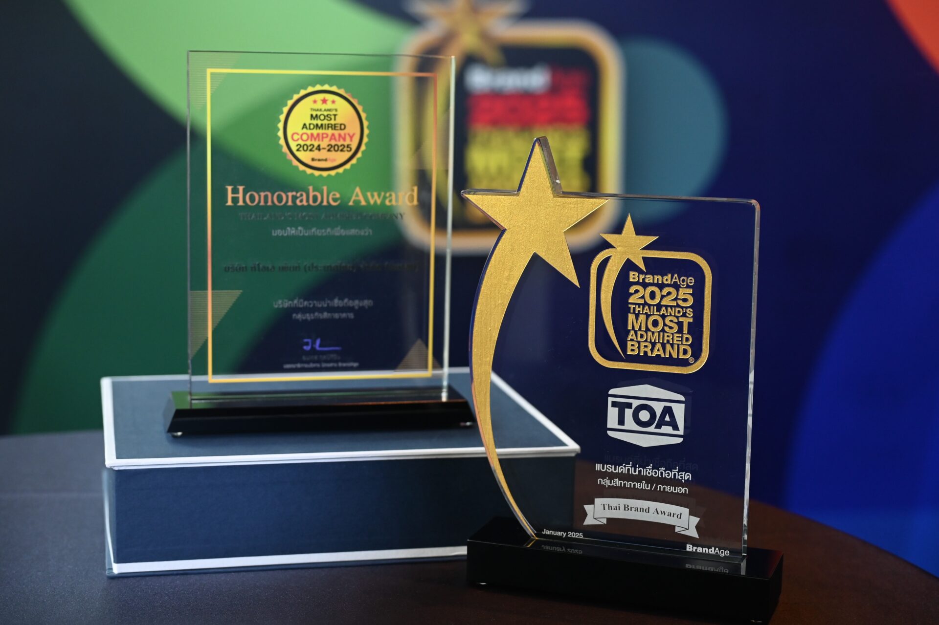 บริษัท ทีโอเอ เพ้นท์ (ประเทศไทย) จำกัด (มหาชน) หรือ TOA ยังคงเดินหน้าสร้างมาตรฐานใหม่ให้กับอุตสาหกรรมสี กวาดเพิ่ม 2 รางวัลใหญ่แห่งปี 2025 จากเวที BrandAge Awards ได้แก่ รางวัล Thailand’s Most Admired Company – สุดยอดองค์กรต้นแบบที่มี “ความสามารถ” และ “ความน่าเชื่อถือ” มากที่สุด และ รางวัล Thailand’s Most Admired Brand – แบรนด์สียอดนิยมอันดับ 1 ที่ครองใจคนไทยทั้งประเทศติดต่อกันเป็นปีที่ 14 ย้ำแชมป์เจ้าตลาดสีตัวจริง ที่พิสูจน์ถึงคุณภาพ นวัตกรรม ความไว้วางใจ และเลือกใช้มากที่สุดจากผู้บริโภค