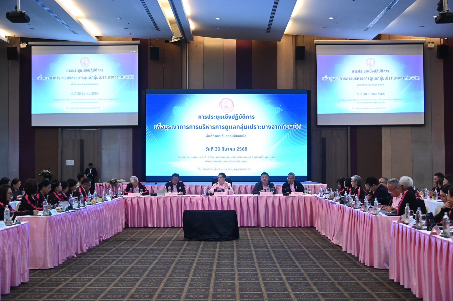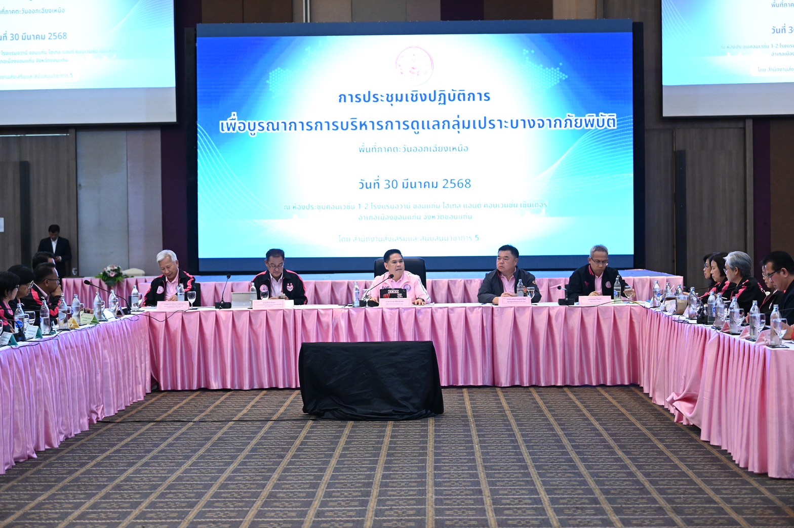 เมื่อวันที่ 30 มีนาคม 2568 ที่โรงแรมอวานีขอนแก่น จังหวัดขอนแก่น นายวราวุธ ศิลปอาชา รัฐมนตรีว่าการกระทรวงการพัฒนาสังคมและความมั่นคงของมนุษย์ (รมว.พม.) เป็นประธานการประชุมเชิงปฏิบัติการศูนย์บริหารการดูแลกลุ่มเปราะบางจากภัยพิบัติ (ศบปภ.) หรือ Disaster Care Center for the Vulnerable (DCCV) เพื่อบูรณาการบริหารการดูแลกลุ่มเปราะบางจากภัยพิบัติ พื้นที่ภาคตะวันออกเฉียงเหนือ 20 จังหวัด ซึ่งเตรียมการมานานหลายเดือนแล้ว เพื่อเป็นศูนย์กลางในการให้ความช่วยเหลือ ดูแล และเยียวยากลุ่มเปราะบางจากภัยพิบัติเชิงรุก ซึ่งมีนายธเนศพล ธนบุณยวัฒน์ ผู้ช่วยรัฐมนตรีประจำกระทรวง พม. , นายนิกร จำนง ประธานคณะที่ปรึกษาติดตามและเร่งรัดการขับเคลื่อนนโยบาย รมว.พม. , ศ.ดร.กนก วงษ์ตระหง่าน รองประธานคณะที่ปรึกษาติดตามและเร่งรัดการขับเคลื่อนนโยบาย รมว.พม. พร้อมคณะที่ปรึกษา , นายอนุกูล ปีดแก้ว ปลัดกระทรวง พม. พร้อมคณะผู้บริหาร เข้าร่วม