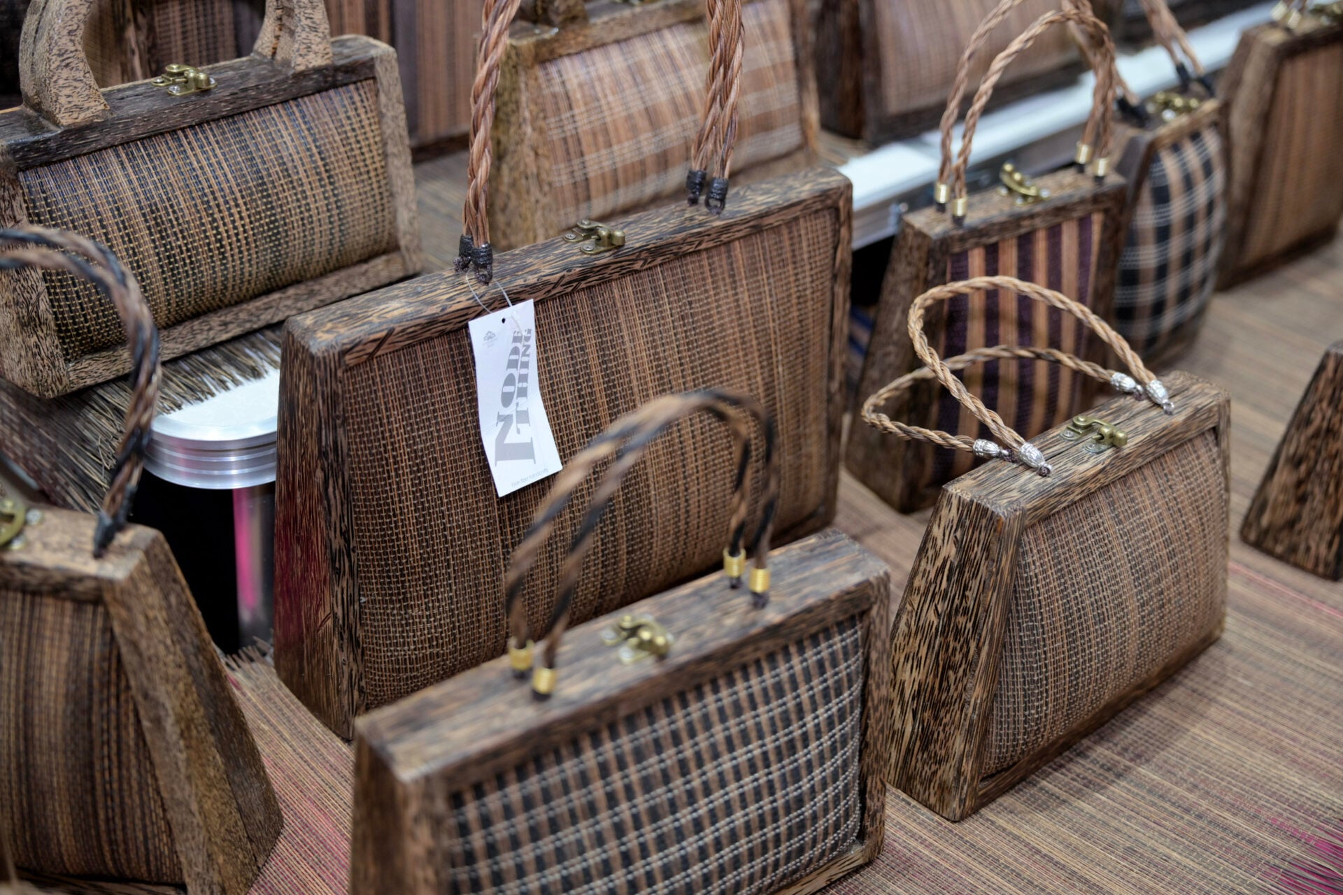 ส่วนใครที่ชอบและมองหากระเป๋าแฟชั่น ที่มาจากวัสดุธรรมชาติ ภายในงานฟก็มีผลิตภัณฑ์ที่ทำมาจากต้นตาลโตนดของชุมชนบ้านบ่อใหม่ จ.สงขลา ซึ่งนำมาดีไซน์ผสมผสานกับผ้าฝ้ายออกมาเป็นกระเป๋าเก๋ ๆ หลายรูปทรง มีสไตล์เป็นเอกลักษณ์น่าใช้ ซึ่งสืบทอดส่งต่อกันมาในชุมชนยาวนานมากกว่า 30 ปี