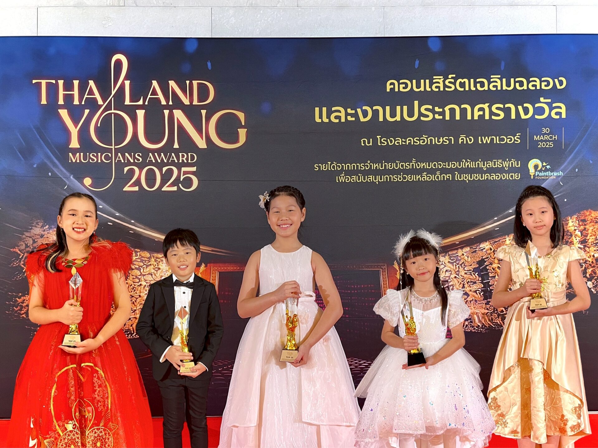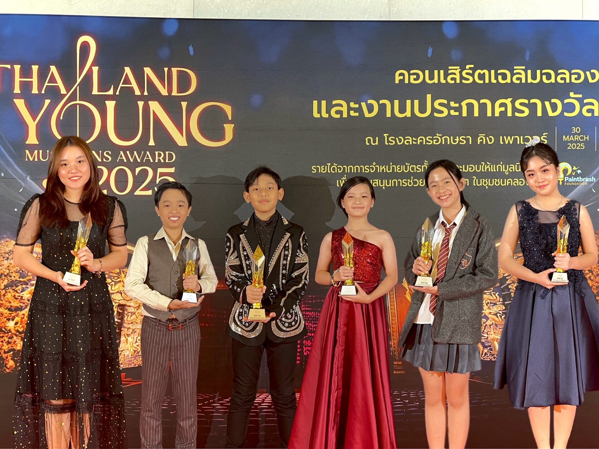 “ไทยแลนด์ ยัง มิวซิเชี่ยนส์ อวอร์ด 2025” จัดขึ้น ณ โรงละครอักษรา คิงพาวเวอร์ รางน้ำ โดยมีผู้สมัครเข้าร่วมแข่งขันกว่า 400 คน ซึ่งผ่านการคัดเลือกเหลือเพียง 25 คน เพื่อรับมอบรางวัล “ Top 25 Thailand Young Musicians Award “ พร้อมทั้งโอกาสขึ้นเวทีเพื่อแสดงความสามารถอย่างเต็มที่ โดยมีรายชื่อเยาวชนผู้รับมอบรางวัล แต่ละสาขาดังนี้