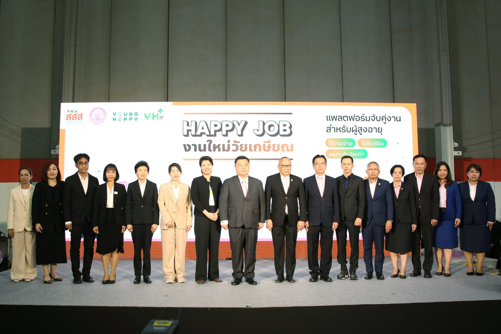 สำหรับงาน Senior Job Connect : งานดี ชีวิตดี ไม่มีเกษียณ จัดขึ้นภายในงาน Ageing Thailand 2025 เป็นความร่วมมือระหว่าง กระทรวง พม. โดยกรมกิจการผู้สูงอายุ (ผส.) , บริษัท เอสเคเอส มาร์เก็ตจำกัด ผู้จัดงาน Ageing Thailand 2025 , บริษัท ยังแฮปปี้ จำกัด , บริษัท ลอนดรี้บาร์ไทย จำกัด ที่รับสมัครผู้สูงอายุทำงานที่ร้านสะดวกซัก ลอนดรี้บาร์ทุกสาขาทั่วประเทศ และภาคีเครือข่ายทุกภาคส่วน โดยมีเป้าหมายในการเสริมสร้างความเข้มแข็งของระบบการจ้างงานผู้สูงอายุ เพื่อพัฒนาคุณภาพชีวิตที่ดีให้กับผู้สูงอายุ อีกทั้งมีการเปิดตัวระบบจับคู่งานผู้สูงอายุ "Young happy plus : Happy Job" ร่วมกับบริษัท ยังแฮปปี้ จำกัด เพื่อดึงผู้สูงอายุกลับเข้าสู่ระบบงานประจำ ด้วยการเพิ่มโอกาสในตลาดแรงงานสำหรับผู้สูงอายุที่ต้องการทำงานพาร์ตไทม์หรือโปรเจกต์สั้นๆ โดยระบบดังกล่าวจะเชื่อมโยงข้อมูลความต้องการทำงานของผู้สูงอายุกับความต้องการจ้างงานของผู้ประกอบการ จากนั้นระบบจะจับคู่ (Matching) ที่เหมาะสมกับศักยภาพและความต้องการของทั้งสองฝ่าย โดยผู้สูงอายุสามารถสมัครได้ฟรี โดยไม่เสียค่าใช้จ่าย