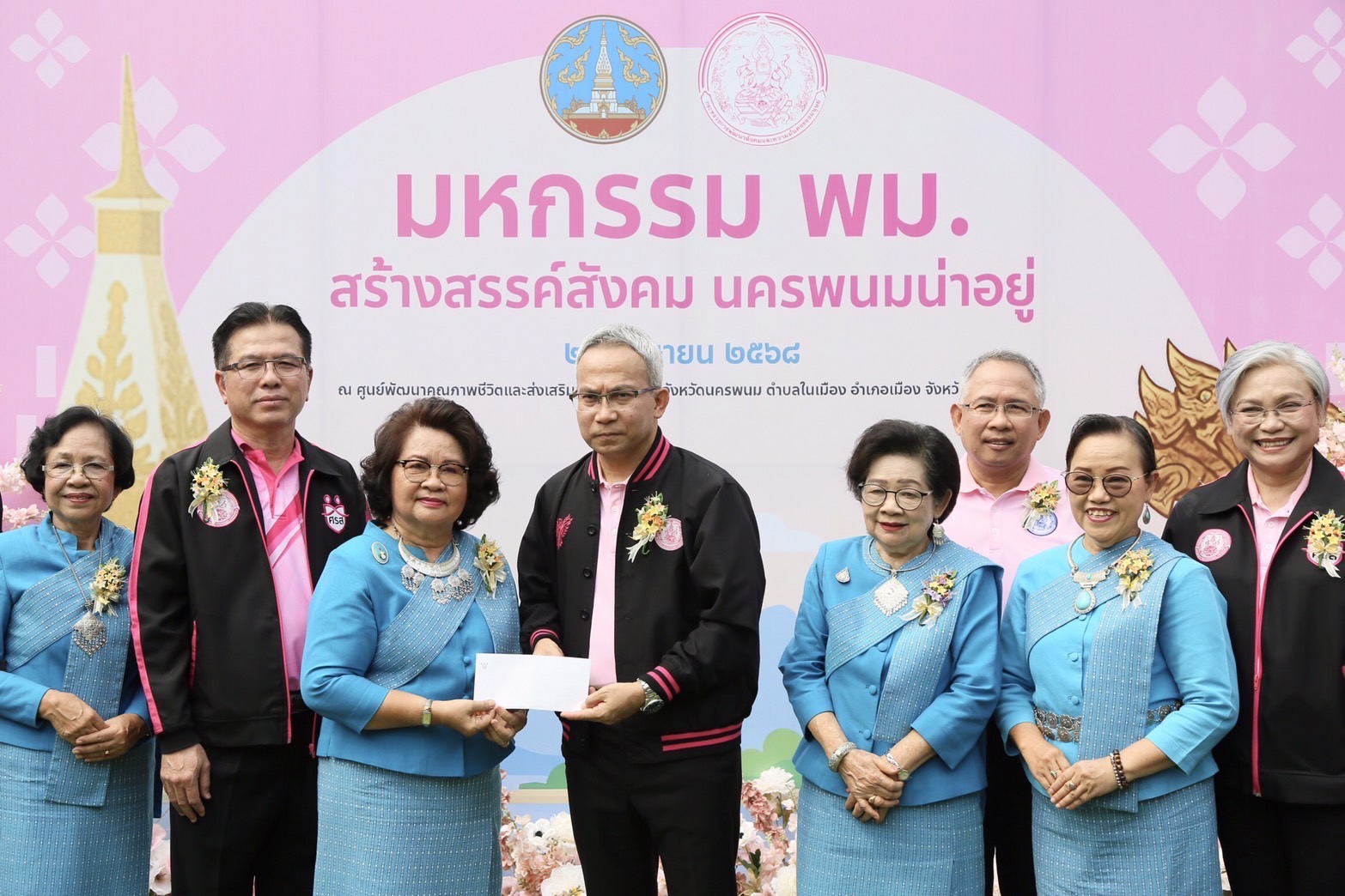 จากนั้น เดินทางไปเยี่ยมชมการดำเนินงานของศูนย์พัฒนาคุณภาพชีวิตและส่งเสริมอาชีพผู้สูงอายุจังหวัดนครพนม (ศพอส.) พร้อมเปิดงาน “มหกรรม พม. สร้างสรรค์สังคมนครพนมน่าอยู่" และร่วมกิจกรรม “ส่งต่อความสุข ให้คนทุกช่วงวัย” ด้วยการมอบไม้เท้าขาวในโครงการจัดหากายอุปกรณ์สำหรับช่วยเหลือคนพิการ 72,000 ชุด เฉลิมพระเกียรติพระบาทสมเด็จพระเจ้าอยู่หัว เนื่องในโอกาสพระราชพิธีมหามงคลเฉลิมพระชนมพรรษา 6 รอบ 28 กรกฎาคม 2567 , มอบเงินสงเคราะห์เด็กในครอบครัวอุปถัมภ์ และมอบวีลแชร์สำหรับคนพิการและผู้สูงอายุ ประจำปี 2568 นอกจากนี้ เดินเยี่ยมชมบูธกิจกรรมและบูธแสดงผลงานของภาคีเครือข่าย