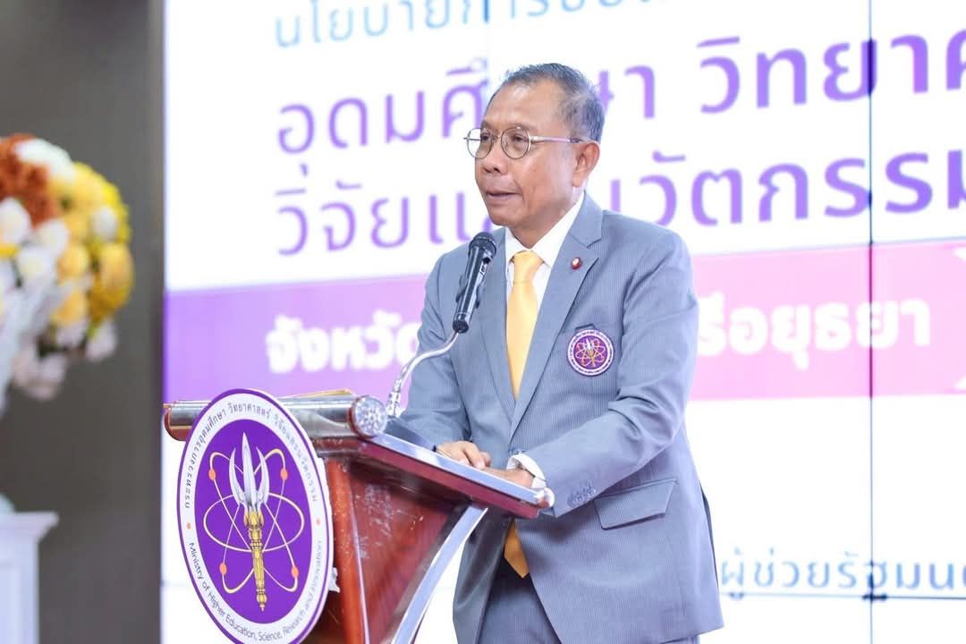 เมื่อวันที่ 13 พ.ค. 2568 นายศุภชัย ใจสมุทร ผู้ช่วยรัฐมนตรีว่าการกระทรวงการอุดมศึกษา วิทยาศาสตร์ วิจัยและนวัตกรรม (อว.) ลงพื้นที่จังหวัดพระนครศรีอยุธยา เพื่อติดตามการดำเนินงานขับเคลื่อนงานด้านการอุมศึกษา วิทยาศาสตร์ วิจัยและนวัตกรรม (อววน.) พร้อมกล่าวมอบนโยบายในหัวข้อ “ทิศทางการขับเคลื่อนงานด้าน อววน. ในพื้นที่จังหวัดพระนครศรีอยุธยา” พร้อมเยี่ยมชมนิทรรศการเทคโนโลยีการผลิตพืช การเกษตรแห่งอนาคต รวมถึงโครงการต่าง ๆ ที่ดำเนินการโดย มทร.สุวรรณภูมิ โดยมี พญ.เพชรดาว โต๊ะมีนา ที่ปรึกษา รมว.อว. นางกรณิศ งามสุคนธ์รัตนา ประธานคณะทำงาน รมว.อว. นายวัชระ กระแสร์ฉัตร์ รองผู้ว่าราชการจังหวัดพระนครศรีอยุธยา, นายประดิษฐ์ สังขจาย สส.พรรคภูมิใจไทย จ.พระนครศรีอยุธยา,