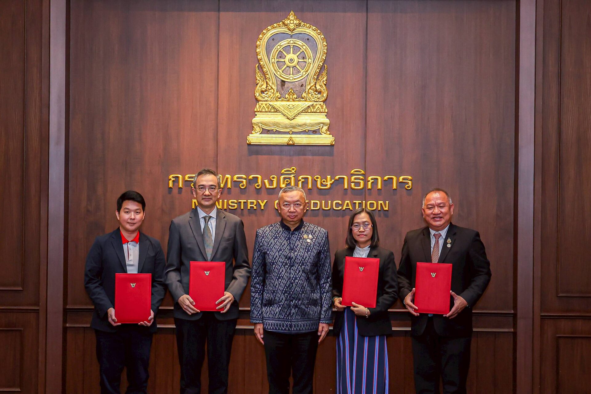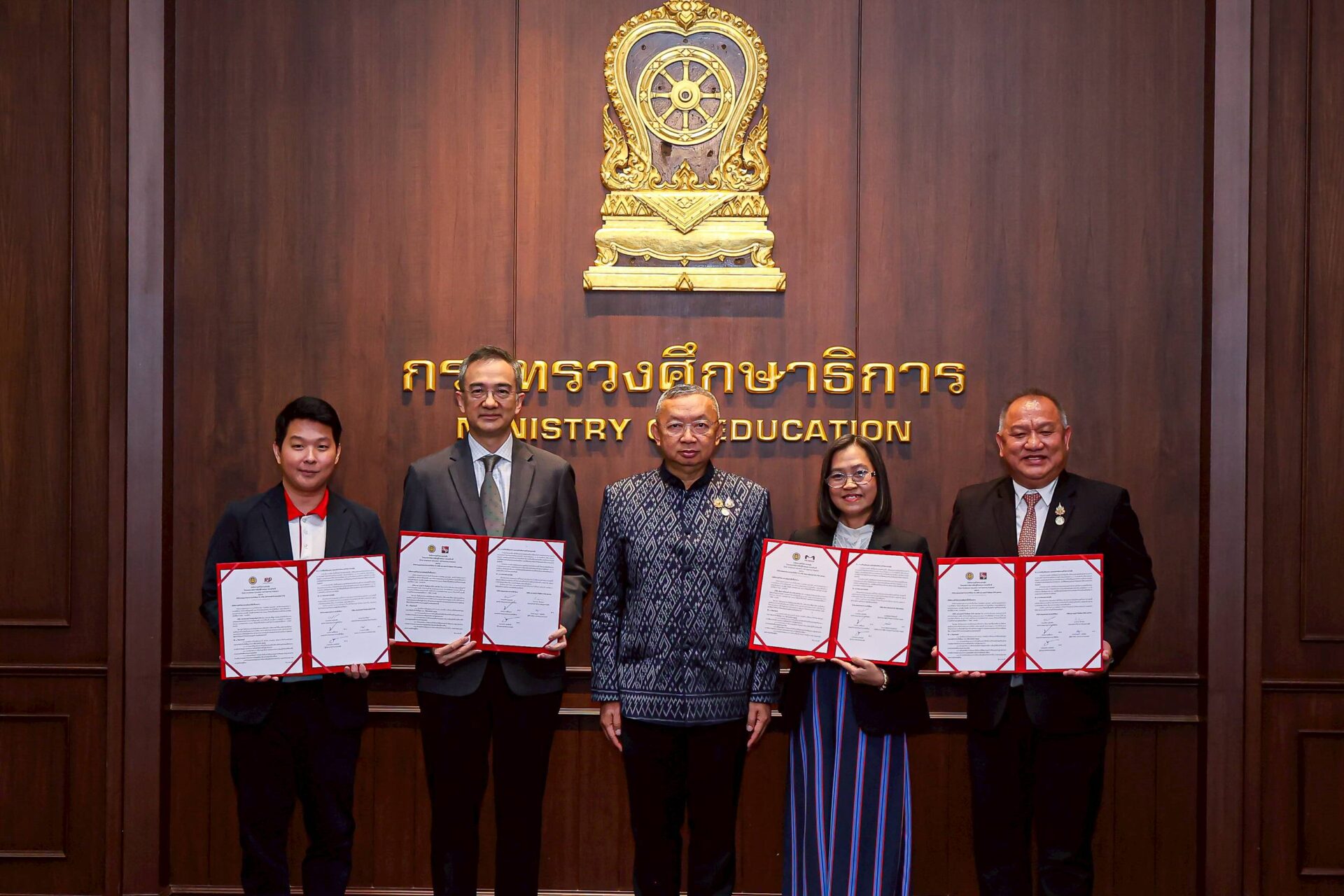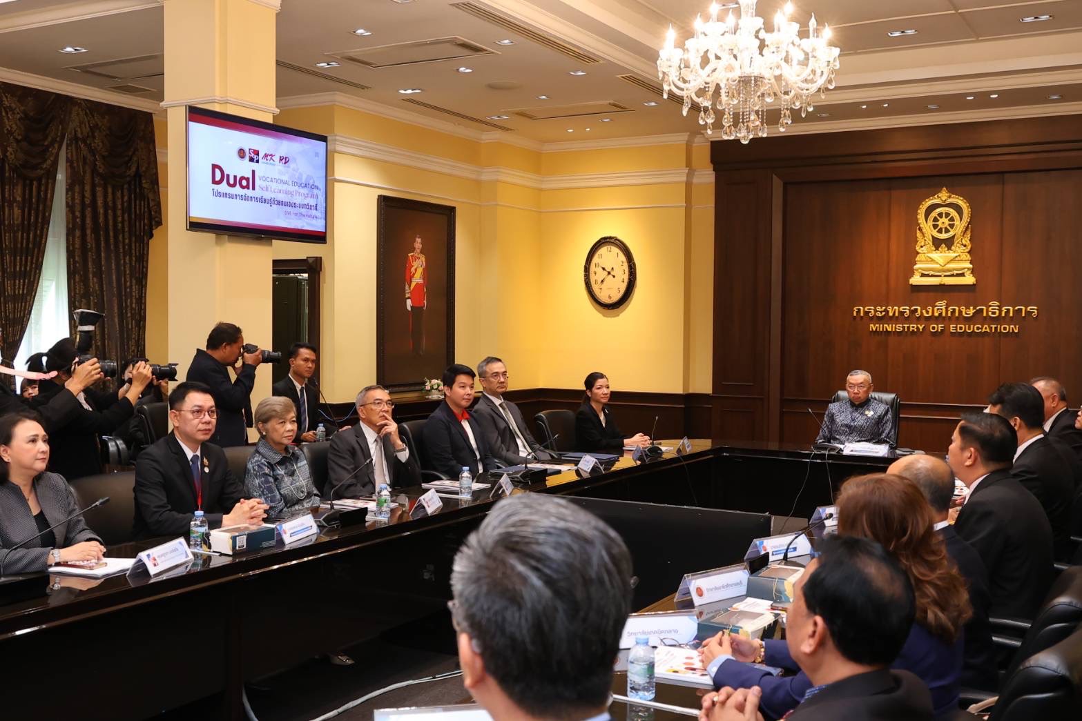 บริษัท เอส แอนด์ พี ซินดิเคท จำกัด (มหาชน) โดย คุณกำธร ศิลาอ่อน ประธานเจ้าหน้าที่สายการเงินและการผลิต (ที่ 2 จากซ้าย) “ร่วมพิธีลงนามความร่วมมือทางการศึกษา โปรแกรมการจัดการเรียนรู้ด้วยตนเองระบบทวิภาคี ร่วมกับสำนักงานคณะกรรมการการอาชีวศึกษา กระทรวงศึกษาธิการ” เพื่อสานต่อเจตนารมณ์ความร่วมมือระหว่างหน่วยงานภาครัฐและเอกชนในการนำเทคโนโลยีเข้ามามีส่วนร่วมในการจัดการเรียนการสอนเพื่อส่งเสริมการเรียนรู้แบบทุกที่ทุกเวลา (Anywhere Anytime Learning) โดยบริษัทฯ ได้นำร่องจัดการเรียนการสอนรูปแบบออนไลน์ (DVE Self-Learning Program) ตั้งแต่ปี 2567 เพื่อให้นักเรียนได้รับโอกาสทางการศึกษาและมีรายได้ต่อเนื่องตลอดระยะเวลาการเรียนของหลักสูตรระดับ ปวส. โดยมี พลตำรวจเอก เพิ่มพูน ชิดชอบ รัฐมนตรีว่าการกระทรวงศึกษาธิการ เป็นประธานในพิธี (กลาง) พร้อมด้วย คุณประเวศวุฒิ ไรวา รองประธานกรรมการ และคุณเกษสุดา ไรวา ประธานคณะกรรมการบริหาร ให้เกียรติร่วมงาน ณ ห้องประชุมราชวัลลภ ชั้น 2 อาคารราชวัลลภ กระทรวงศึกษาธิการ เมื่อวันที่ 8 พฤษภาคม 2568
