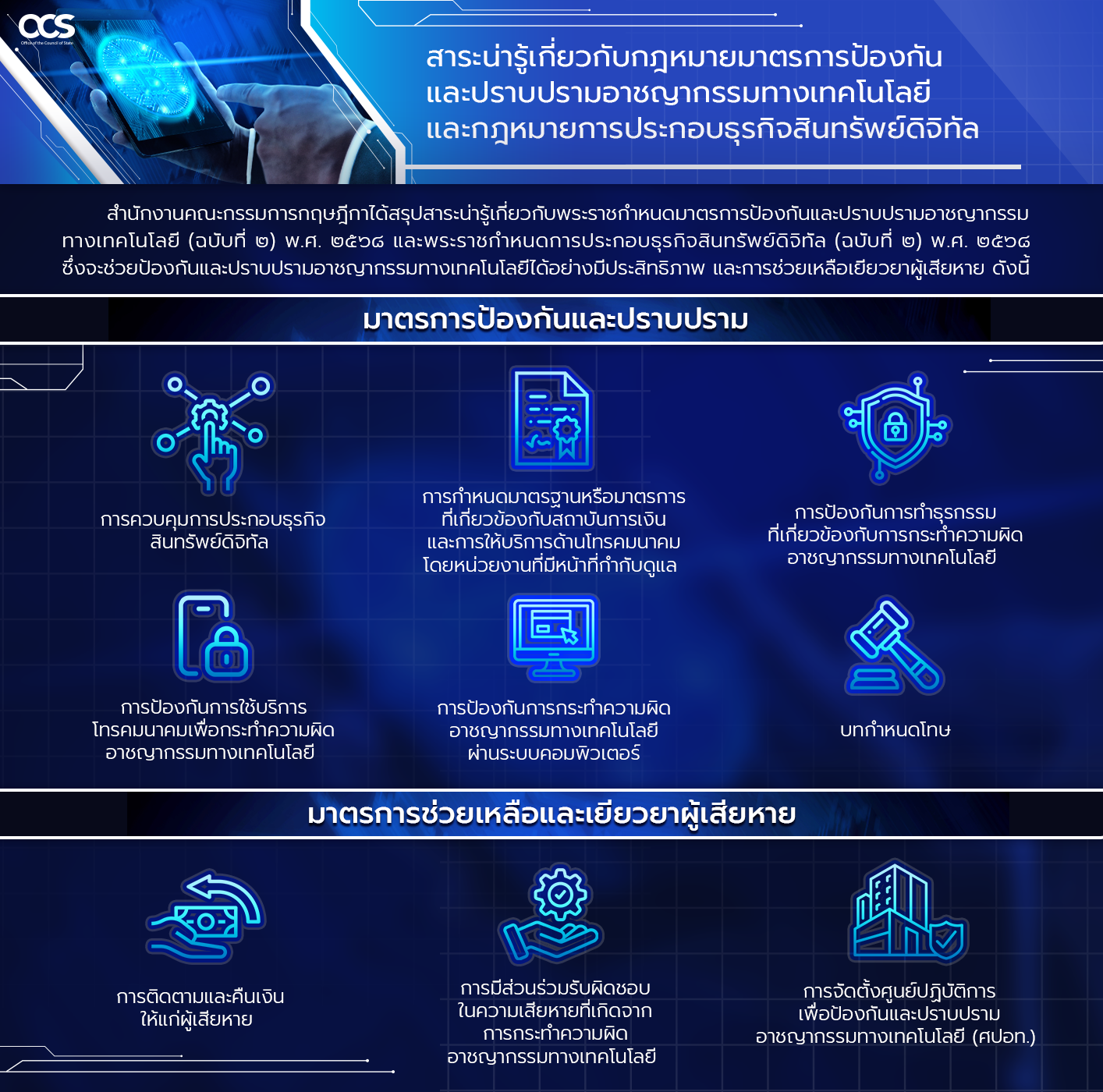 เมื่อพระราชกำหนดมาตรการป้องกันและปราบปรามอาชญากรรมทางเทคโนโลยี (ฉบับที่ ๒) พ.ศ. ๒๕๖๘ และพระราชกำหนดการประกอบธุรกิจสินทรัพย์ดิจิทัล (ฉบับที่ ๒) พ.ศ. ๒๕๖๘ มีผลใช้บังคับแล้ว จะช่วยป้องกันและปราบปรามอาชญากรรมทางเทคโนโลยีได้อย่างมีประสิทธิภาพซึ่งทำให้ประชาชนมีความปลอดภัยในการใช้บริการโทรศัพท์หรือโทรคมนาคมหรือการทำธุรกรรมด้านการเงิน และในกรณีที่ประชาชนเป็นผู้เสียหายจะได้รับการช่วยเหลือและติดตามเส้นทางการเงินเพื่อนำเงินมาคืนได้อย่างรวดเร็ว ประกอบกับการกำหนดให้หน่วยงานของเอกชนมีส่วนร่วมรับผิดในความเสียหายโดยมีการกำหนดมาตรฐานหรือมาตรการที่เกี่ยวข้องจะทำให้หน่วยงานของเอกชนมีความระมัดระวังในการปฏิบัติหน้าที่ยิ่งขึ้น