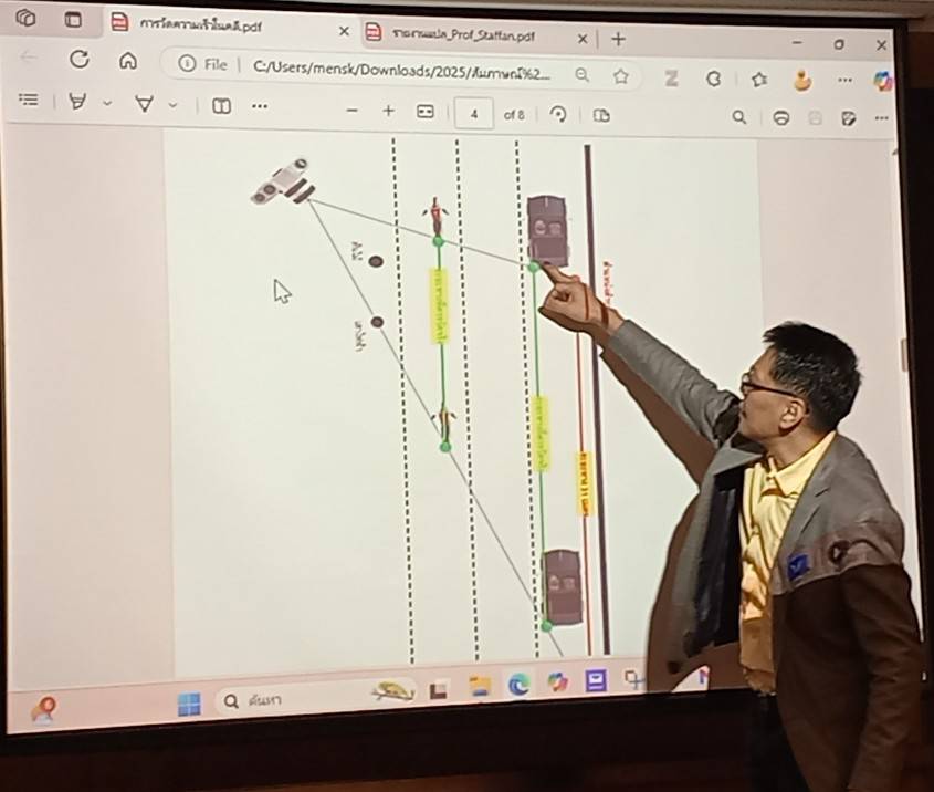 2.ใช้โปรแกรมคอมพิวเตอร์การย้อนรอยอุบัติเหตุ (ขั้นสูงขึ้น) หรือประมวลในซอฟต์แวร์ PC-CRASH สามารถทวนสอบและตรวจสอบหลักฐานข้อมูลการเกิดอุบัติเหตุ