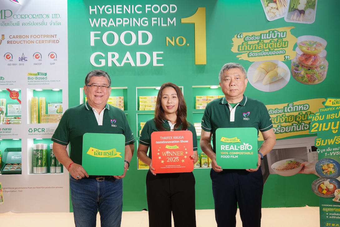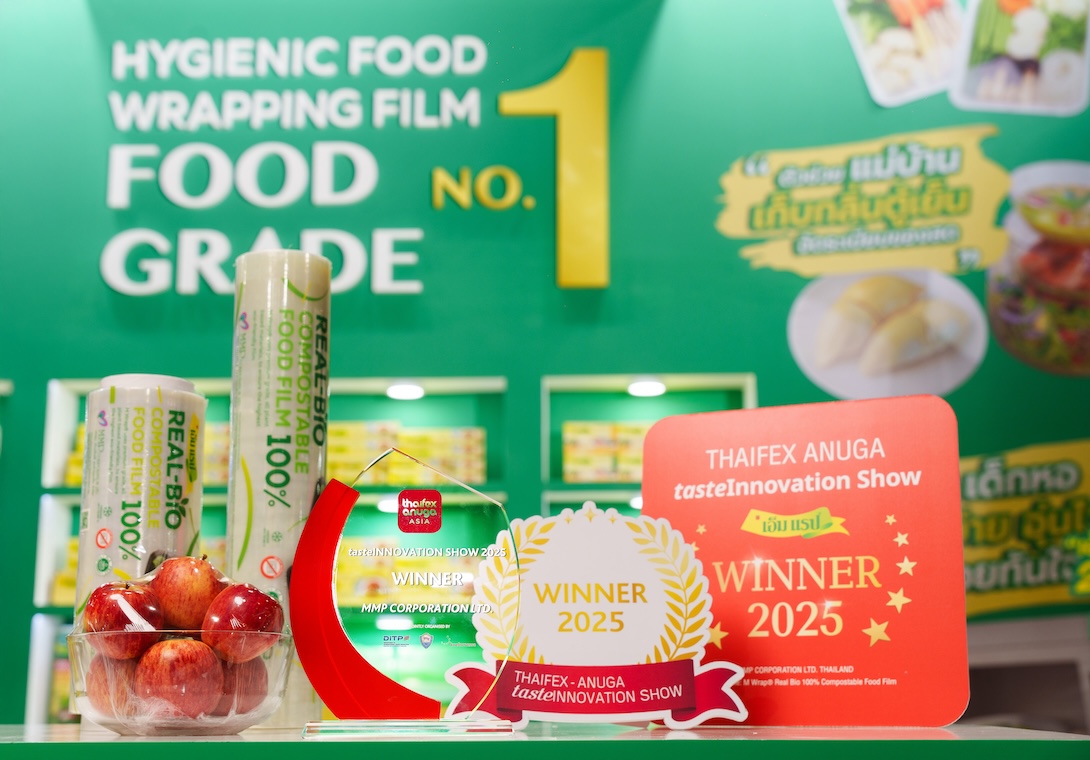 ทั้งนี้ M Wrap® Real Bio 100% Compostable Food Film คว้ารางวัล tasteInnovation Show Winners ในงาน THAIFEX – Anuga Asia 2025 เป็น 1 ใน 10 ที่ได้รับการคัดเลือกจากผลิตภัณฑ์กว่า 800 รายการ ด้วยโซลูชันที่ล้ำสมัย พิจารณาจากความคิดสร้างสรรค์ และนวัตกรรมในเทรนด์สำคัญของอุตสาหกรรมอาหารและเครื่องดื่ม รวมถึงด้านความยั่งยืน (sustainability) เป็นบรรจุภัณฑ์เพื่อสิ่งแวดล้อม M Wrap® Real Bio โดดเด่นในฐานะฟิล์มถนอมอาหารที่ผลิตจากวัสดุชีวภาพ 100% ย่อยสลายได้ตามธรรมชาติ ไม่ทิ้งสารตกค้างต่อสิ่งแวดล้อม ถือเป็นนวัตกรรมบรรจุภัณฑ์รักษ์โลกที่ตอบโจทย์ความต้องการของผู้บริโภครุ่นใหม่ที่ใส่ใจทั้งคุณภาพชีวิต และสิ่งแวดล้อม