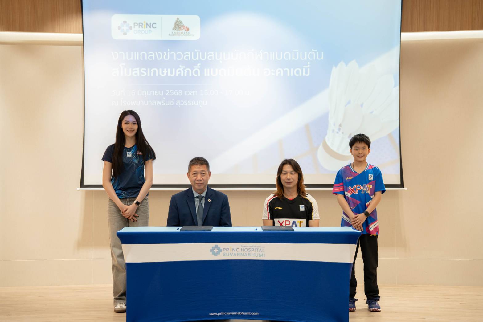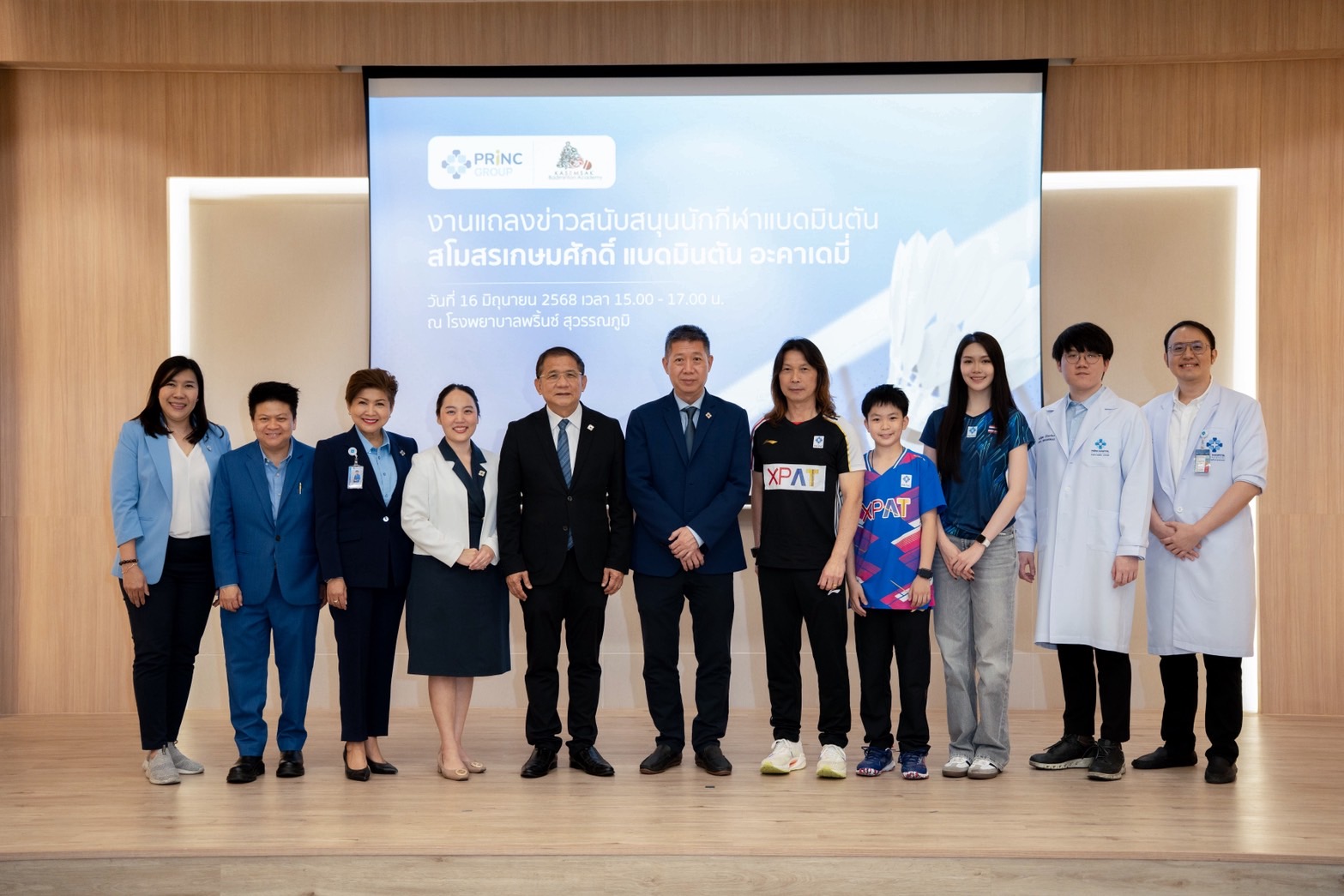 บริษัท พริ้นซิเพิล แคปิตอล จำกัด (มหาชน) (“PRINC Group”) ร่วมกับ โรงพยาบาลพริ้นซ์ สุวรรณภูมิ จัดงานแถลงข่าวสนับสนุนนักกีฬาเยาวชนไทย สโมสรแบดมินตันเกษมศักดิ์ แบดมินตัน อะคาเดมี่ บริหารงานโดย นายเกษมศักดิ์ จตุจินดา ผู้ปั้นนักแบดฟอร์มแรง น้องพิงค์ - พิชฌามลณ์ โอภาสนิพัทธ์ อายุ 18 ปี แชมป์หญิงเดี่ยว World Junior Championship 2023 และ น้องเร็น - รวิณ ชูชัยศรี แชมป์ชายเดี่ยวและชายคู่เยาวชนชิงแชมป์ประเทศไทย 2568 พร้อมชูศูนย์รักษาโรคกระดูกและข้อแบบองค์รวม PRINCE OF BONES และศูนย์โรคหัวใจและหลอดเลือด รวมถึงศูนย์สมองและระบบประสาท พร้อมดูแลนักกีฬาอย่างครบวงจร ตอบโจทย์สุขภาพและความต้องการเฉพาะด้าน โดยมี นายธาริน เอี่ยมเพชราพงศ์ ประธานเจ้าหน้าที่บริหารฝ่ายการเงิน PRINC Group พร้อมด้วย นายแพทย์สมคิด อุดมกิจมงคล ผู้อำนวยการโรงพยาบาลพริ้นซ์ สุวรรณภูมิ มาร่วมประกาศพันธกิจของบริษัทในปีนี้ ที่มุ่งเน้นการสนับสนุนกีฬาไทยอย่างต่อเนื่อง เพื่อพัฒนาศักยภาพนักกีฬาเยาวชนและส่งเสริมสุขภาพแบบองค์รวม ณ ห้องประชุมปันสุข โรงพยาบาลพริ้นซ์ สุวรรณภูมิ