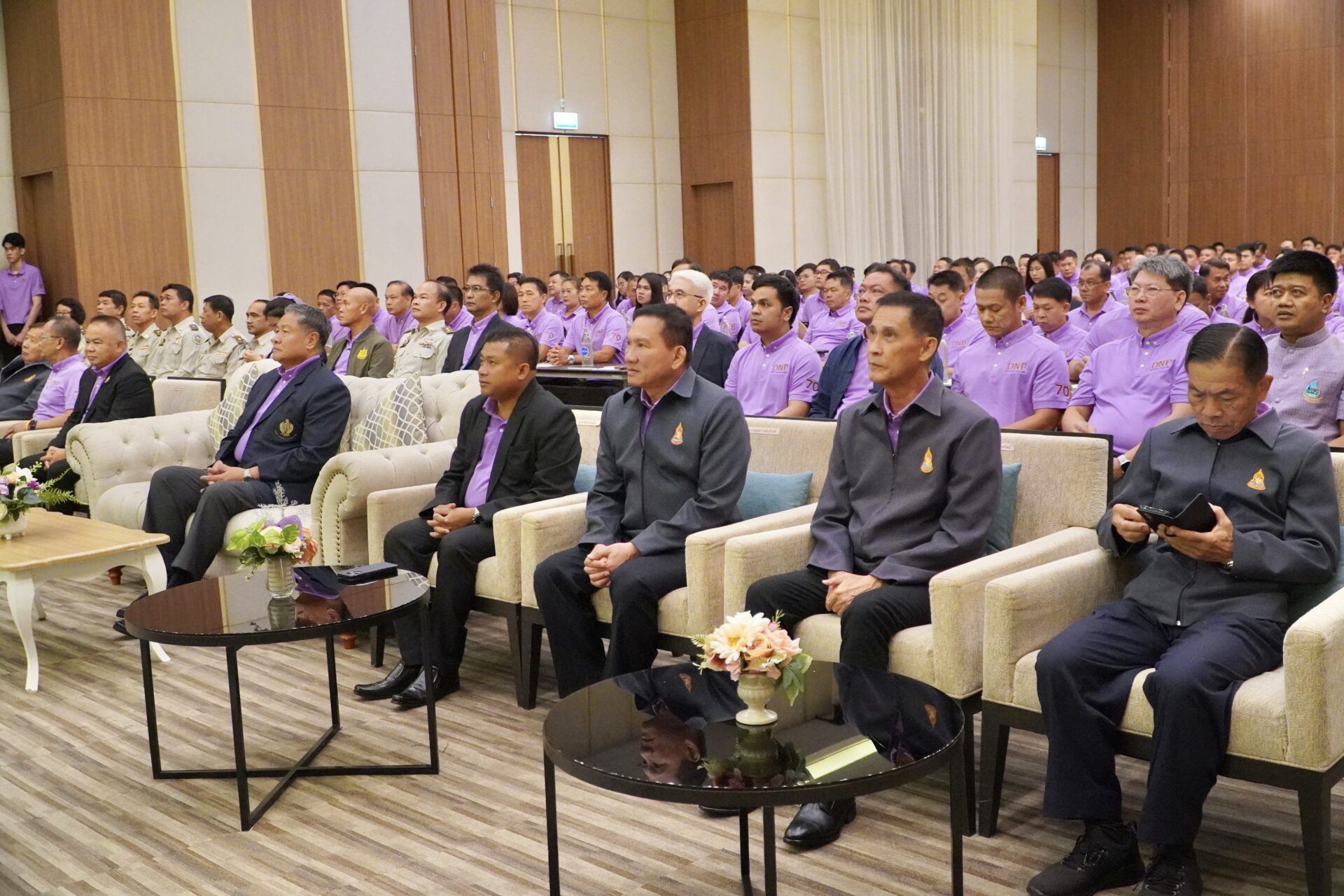 โดยมีผู้เข้าร่วมประชุมฯ เป็นข้าราชการผู้ปฏิบัติงานโครงการอันเนื่องมาจากพระราชดำริ ทั้งในส่วนกลางและส่วนภูมิภาค จำนวน 250 คน รับฟังการบรรยายจากคณะวิทยากรผู้มีประสบการณ์จากหน่วยงานภายนอก และร่วมเสวนาในประเด็นการเสริมสร้างศักยภาพชุมชนในพื้นที่ป่าอนุรักษ์ตามมาตรา 64 แห่งพระราชบัญญัติอุทยานแห่งชาติ พ.ศ. 2562 และมาตรา 121 แห่งพระราชบัญญัติสงวนและคุ้มครองสัตว์ป่า พ.ศ. 2562 สู่การอยู่ร่วมกันกับป่าได้อย่างยั่งยืน รวมทั้งมีการนำเสนอผลการดำเนินงานโครงการอันเนื่องมาจากพระราชดำริในพื้นที่ป่าอนุรักษ์สู่การขยายผล จากหน่วยงานในสังกัด