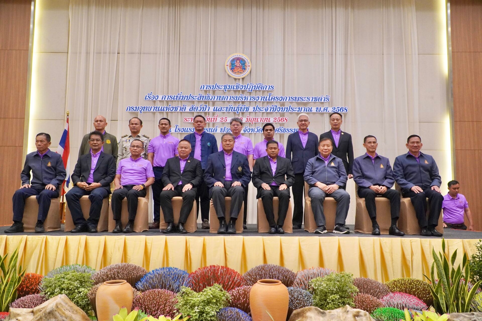 โครงการประชุมเชิงปฏิบัติการ การเพิ่มประสิทธิภาพการบริหารงานโครงการพระราชดำริ กรมอุทยานแห่งชาติ สัตว์ป่า และพันธุ์พืช ประจำปีงบประมาณ พ.ศ. 2568 มีวัตถุประสงค์เพื่อเพิ่มประสิทธิภาพการบริหารงานโครงการพระราชดำริ ให้บรรลุตามเป้าหมายและนำไปสู่การสนองพระราชปณิธานของพระบาทสมเด็จพระเจ้าอยู่หัว เพื่อให้ประชาชนได้มีคุณภาพชีวิตที่ดี สามารถอยู่ร่วมกับป่าได้อย่างเกื้อกูลและยั่งยืน ภายใต้การบริหารจัดการทรัพยากรธรรมชาติให้มีความอุดมสมบูรณ์ โดยการน้อมนำพระปฐมบรมราชโองการของพระบาทสมเด็จพระวชิรเกล้าเจ้าอยู่หัว “เราจะสืบสาน รักษา และต่อยอด และครองแผ่นดินโดยธรรม เพื่อประโยชน์สุขแห่งอาณาราษฎรตลอดไป” มาดำเนินการแก้ไขปัญหาความเสื่อมโทรมของทรัพยากรธรรมชาติและสิ่งแวดล้อม เพื่อให้เกิดความกินดีอยู่ดีและความเป็นอยู่ที่ดีของราษฎร