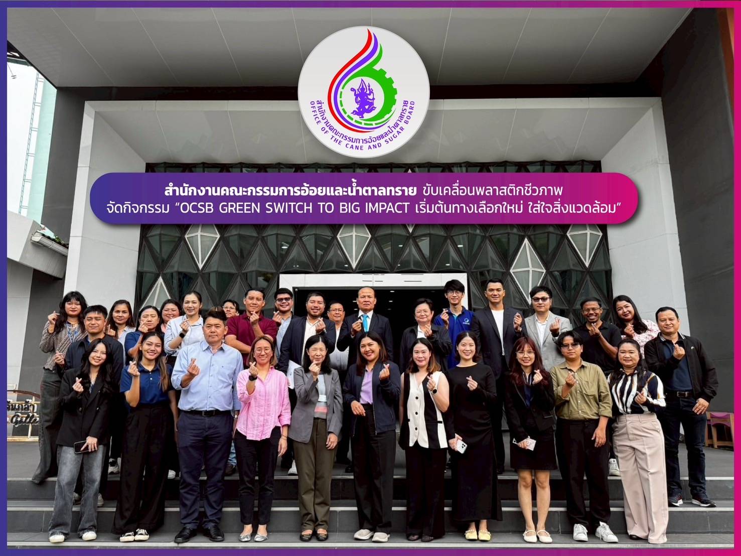 สำนักงานคณะกรรมการอ้อยและน้ำตาลทราย (สอน.) เดินหน้าขับเคลื่อนโครงการพัฒนาศักยภาพอุตสาหกรรมชีวภาพจากอุตสาหกรรมอ้อยและน้ำตาลทราย และพืชเศรษฐกิจอื่นสู่การผลิตเชิงพาณิชย์ จัดกิจกรรม “ OCSB GREEN SWITCH TO BIG IMPACT เริ่มต้นทางเลือกใหม่ ใส่ใจสิ่งแวดล้อม” ส่งเสริมการใช้พลาสติกชีวภาพในภาคการท่องเที่ยวและการขนส่ง