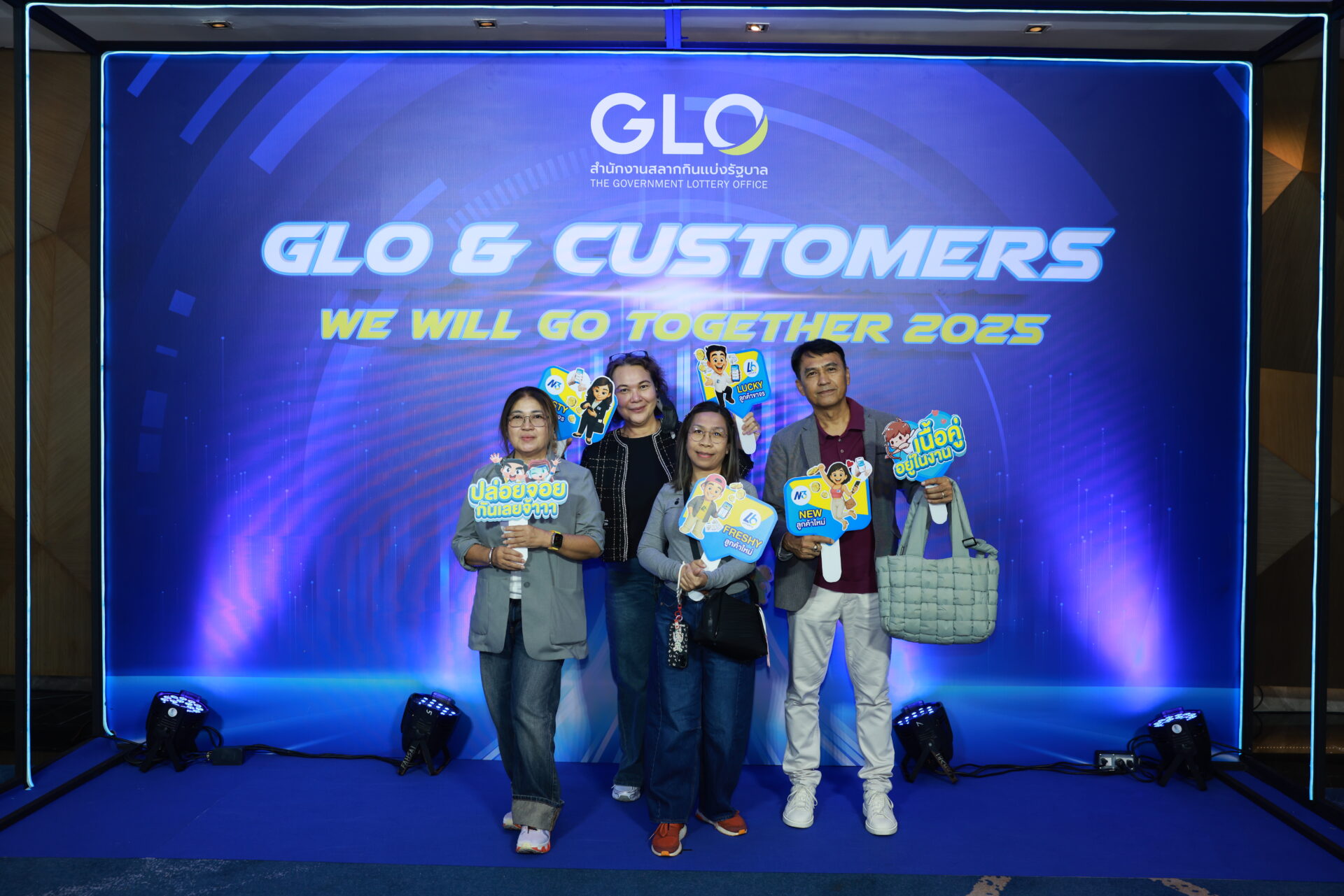 ภายในงานเต็มไปด้วยบรรยากาศแห่งความสุข สนุกสนานและอบอุ่น บรรดาลูกค้าที่เป็นผู้ซื้อสลากกินแบ่งรัฐบาลหกหลัก (Lottery 6: L6) แบบดิจิทัล ร่วมสนุกกับกิจกรรมมากมาย ไม่ว่าจะเป็นการชมบูธจัดนิทรรศการ การเล่นเกม กิจกรรมบันเทิง รับของรางวัลและของที่ระลึก รวมถึงได้เพลิดเพลินไปกับการแสดงบนเวที พร้อมมินิคอนเสิร์ตจากศิลปินชื่อดัง ว่าน ธนกฤต มินตรา อินทิรา และโจ๊ก โซคูล ซึ่งกิจกรรมทั้งหลายเหล่านี้ สำนักงานสลากกินแบ่งรัฐบาลมีความตั้งใจและเต็มใจที่จะส่งมอบความสุข ความประทับใจ และความรู้สึกดี ๆ ผ่านการจัดงาน GLO & Customers We will go together 2025 และมุ่งหวังที่จะจัดกิจกรรมดี ๆ เช่นนี้ให้แก่ลูกค้าในโอกาสต่อไป