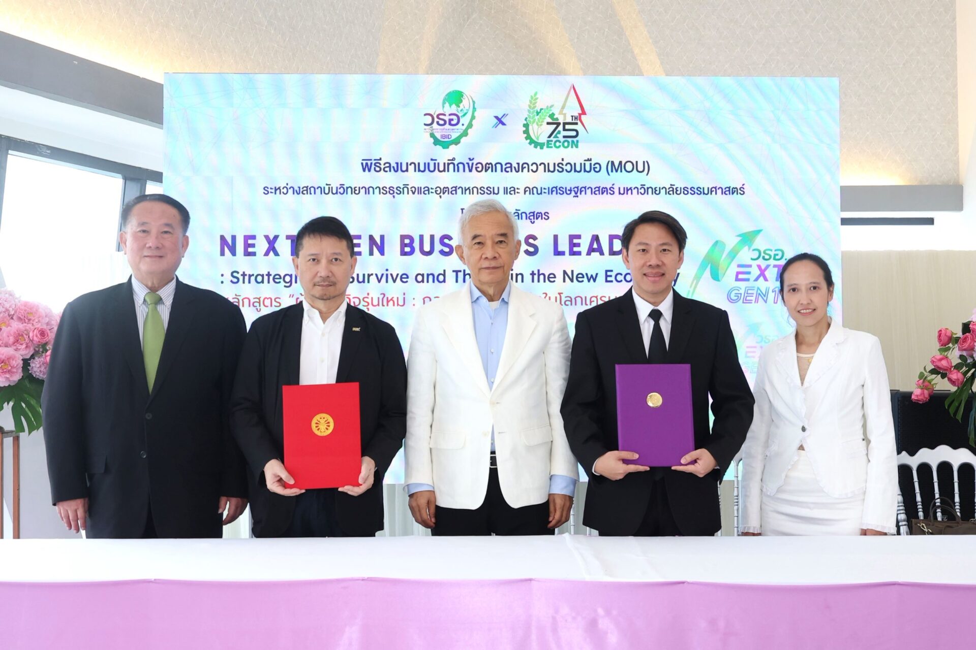 มูลนิธิเพื่อการพัฒนาการประกอบการธุรกิจและอุตสาหกรรม (วธอ.) ร่วมกับคณะเศรษฐศาสตร์ มหาวิทยาลัยธรรมศาสตร์ เปิดตัวโครงการหลักสูตร “ผู้นำธุรกิจรุ่นใหม่ : กลยุทธ์รอดและโตในโลกเศรษฐกิจใหม่” หรือ วธอ. Next Gen 1 เพื่อพัฒนาภาวะผู้นำของผู้บริหารยุคใหม่ให้พร้อมรับมือกับความเปลี่ยนแปลงของเศรษฐกิจโลก พร้อมเสริมองค์ความรู้ด้านเศรษฐศาสตร์ การตลาด นวัตกรรม และการออกแบบนโยบาย เพื่อการเติบโตอย่างยั่งยืนในระยะยาว