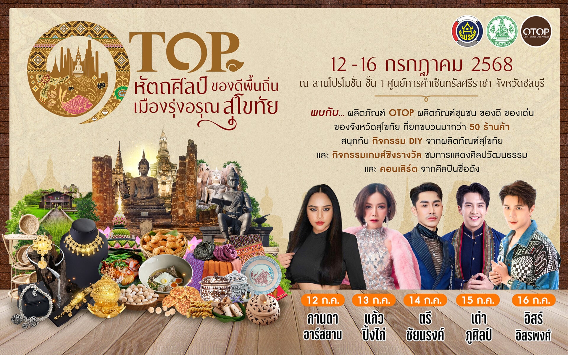 จังหวัดสุโขทัย โดยสำนักงานพัฒนาชุมชนจังหวัดสุโขทัย ขอเชิญร่วม ! “OTOP หัตถศิลป์ ของดีพื้นถิ่น เมืองรุ่งอรุณสุโขทัย” พบกับสินค้าสุดปราณีตจากช่างฝีมือระดับครู อาทิ ผ้าซิ่นตีนจก เครื่องทองโบราณ สังคโลก ของใช้ ของฝาก และสมุนไพร รวมกว่า 50 บูธ!