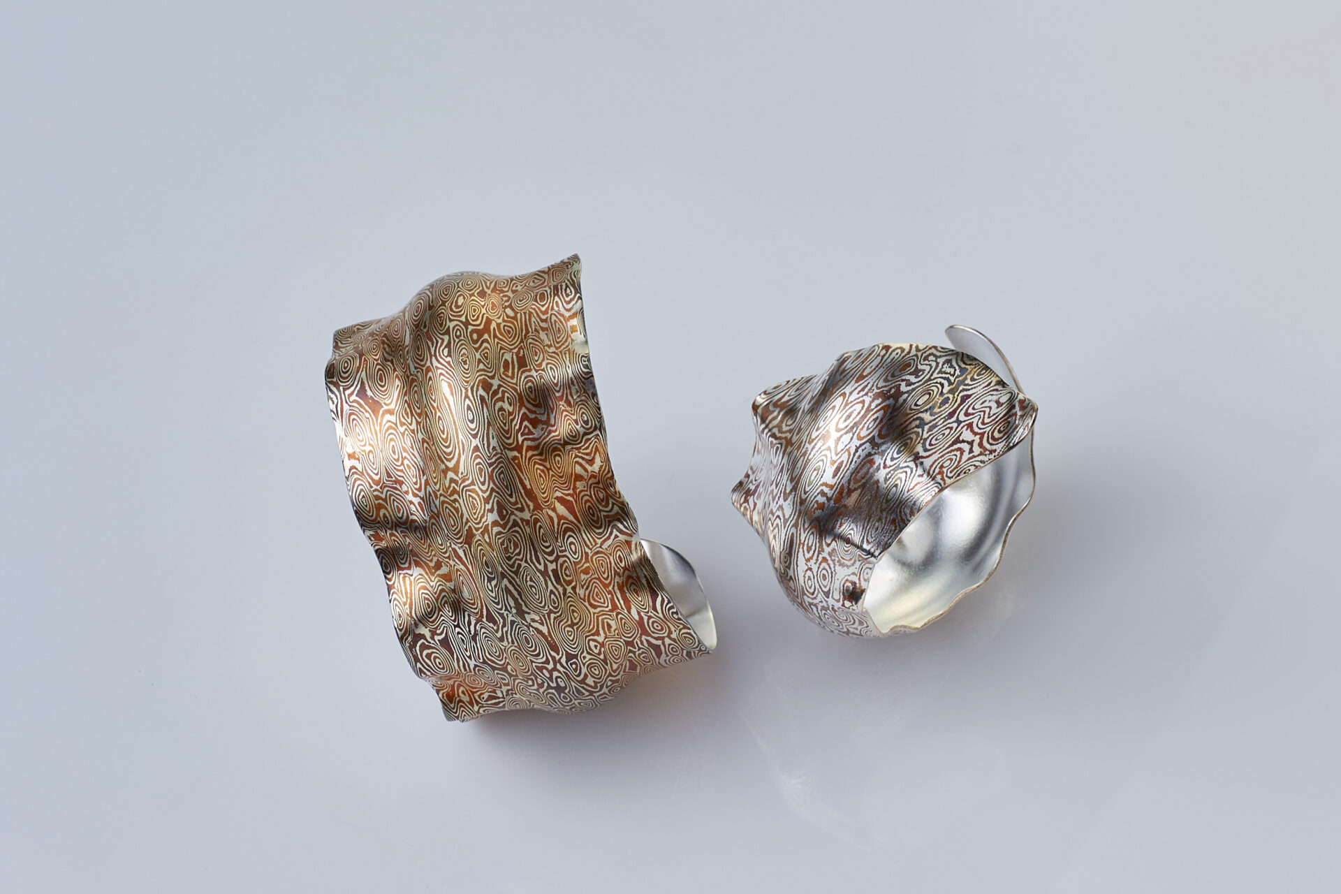 เริ่มต้นที่ “PONK SMITHI - พ้อง สมิทธี” โดย พ้อง พรสมิทธิกุล เล่าถึงแรงบันดาลใจในการออกแบบเครื่องประดับเงินตาไม้ ว่า “เครื่องประดับของเราใช้เทคนิค Mokume Gane ผสมผสานโลหะเงิน ทองแดง ผ่านการตีขึ้นรูปด้วยฝีมือช่างไทยกว่า 2,000 ครั้ง สร้างลวดลายที่เป็นเอกลักษณ์ ไม่ซ้ำใครในแต่ละชิ้น”