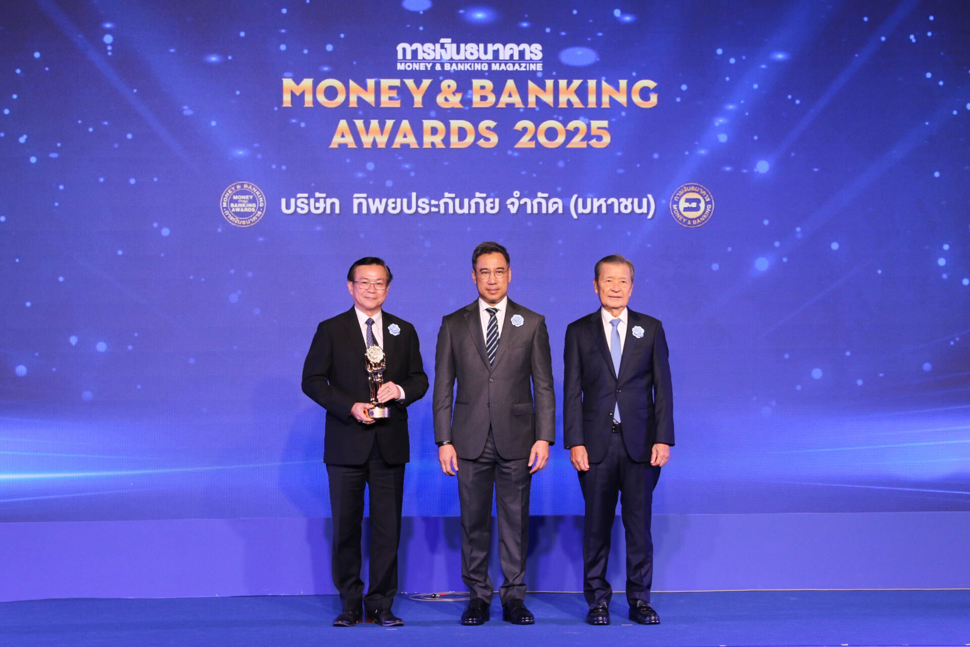 ดร.สมพร สืบถวิลกุล ประธานเจ้าหน้าที่บริหาร บริษัท ทิพย กรุ๊ป โฮลดิ้งส์ จำกัด (มหาชน) และกรรมการผู้จัดการใหญ่ บริษัท ทิพยประกันภัย จำกัด (มหาชน) เข้ารับรางวัลเกียรติยศ “บริษัทที่มีบริการยอดเยี่ยมด้านประกันวินาศภัย” จาก ดร.เศรษฐพุฒิ สุทธิวาทนฤพุฒิ ผู้ว่าการธนาคารแห่งประเทศไทย ซึ่งให้เกียรติเป็นประธานมอบรางวัล ภายในงาน Money & Banking Awards 2025 ณ โรงแรมไฮแอท รีเจนซี กรุงเทพฯ โดยมี นายสันติ วิริยะรังสฤษฎ์ ประธานบรรณาธิการ วารสารการเงินธนาคาร ร่วมแสดงความยินดี