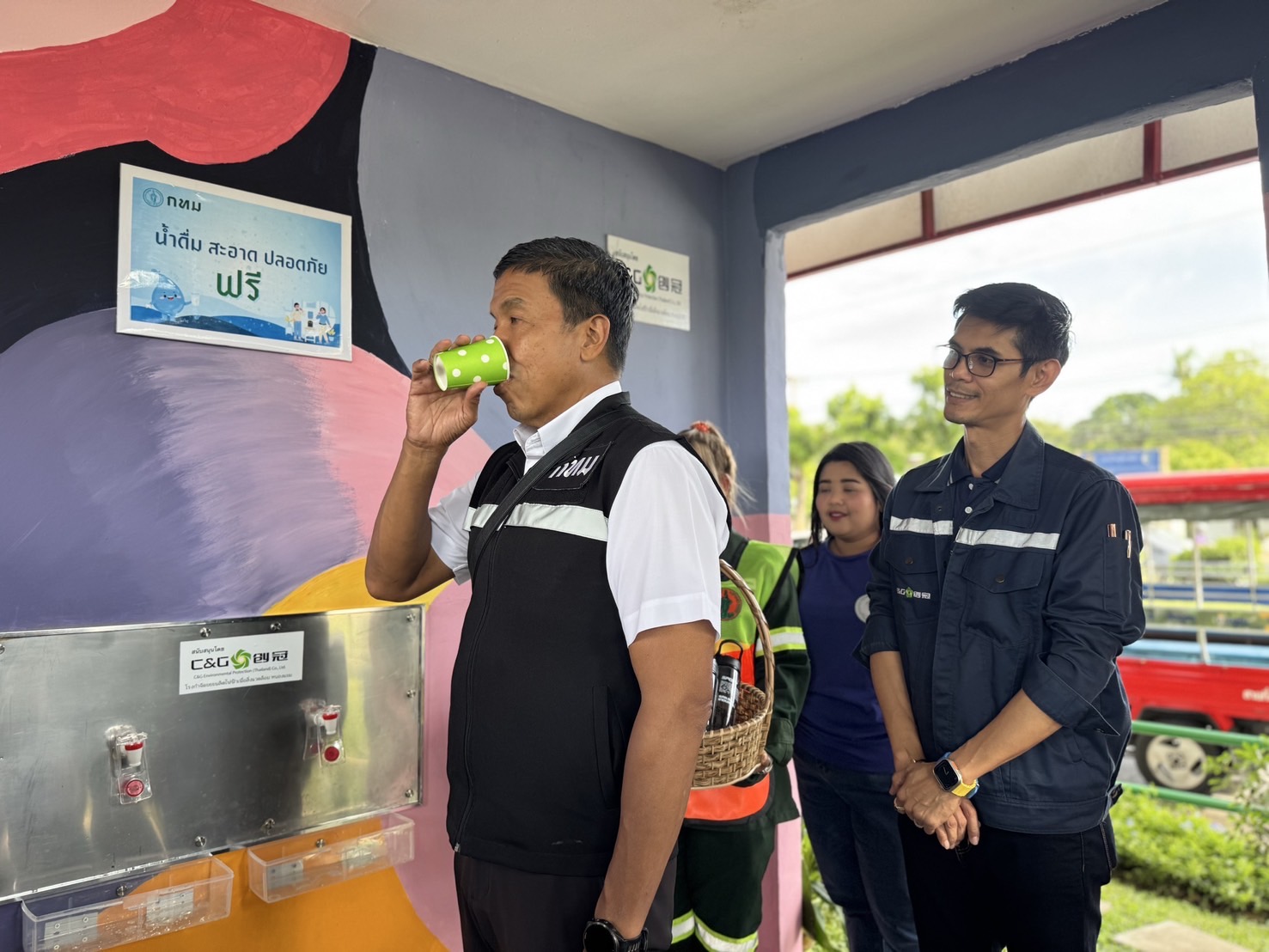 บริษัท ซีแอนด์จี เอ็นไวรอนเมนทอล โปรเท็คชั่น (ประเทศไทย) จำกัด ผู้ดำเนินกิจการโรงกำจัดขยะผลิตไฟฟ้าเพื่อสิ่งแวดล้อม หนองแขม สนับสนุนเงินจำนวน 30,000 บาท ให้กับสำนักงานเขตหนองแขม สำหรับนำไปจัดทำตู้บริการน้ำดื่มให้กับประชาชน ในบริเวณพื้นที่สวน 15 นาที ปากซอยเพชรเกษม 77 เขตหนองแขม ซึ่งทางสำนักงานเขตหนองแขม ต้องการปรับปรุงป้อมตำรวจที่ไม่ได้ใช้งาน และมีสภาพเสื่อมโทรมให้กลับมาใช้ประโยชน์ได้ โดยทำเป็นจุดบริการน้ำดื่มสะอาดให้กับประชาชนที่สัญจรผ่านไปมาได้เข้าถึงบริการด้านสาธารณูปโภค และเป็นการปรับปรุงภูมิทัศน์โดยรอบให้มีความสวยงาม ปลอดภัยอีกด้วย