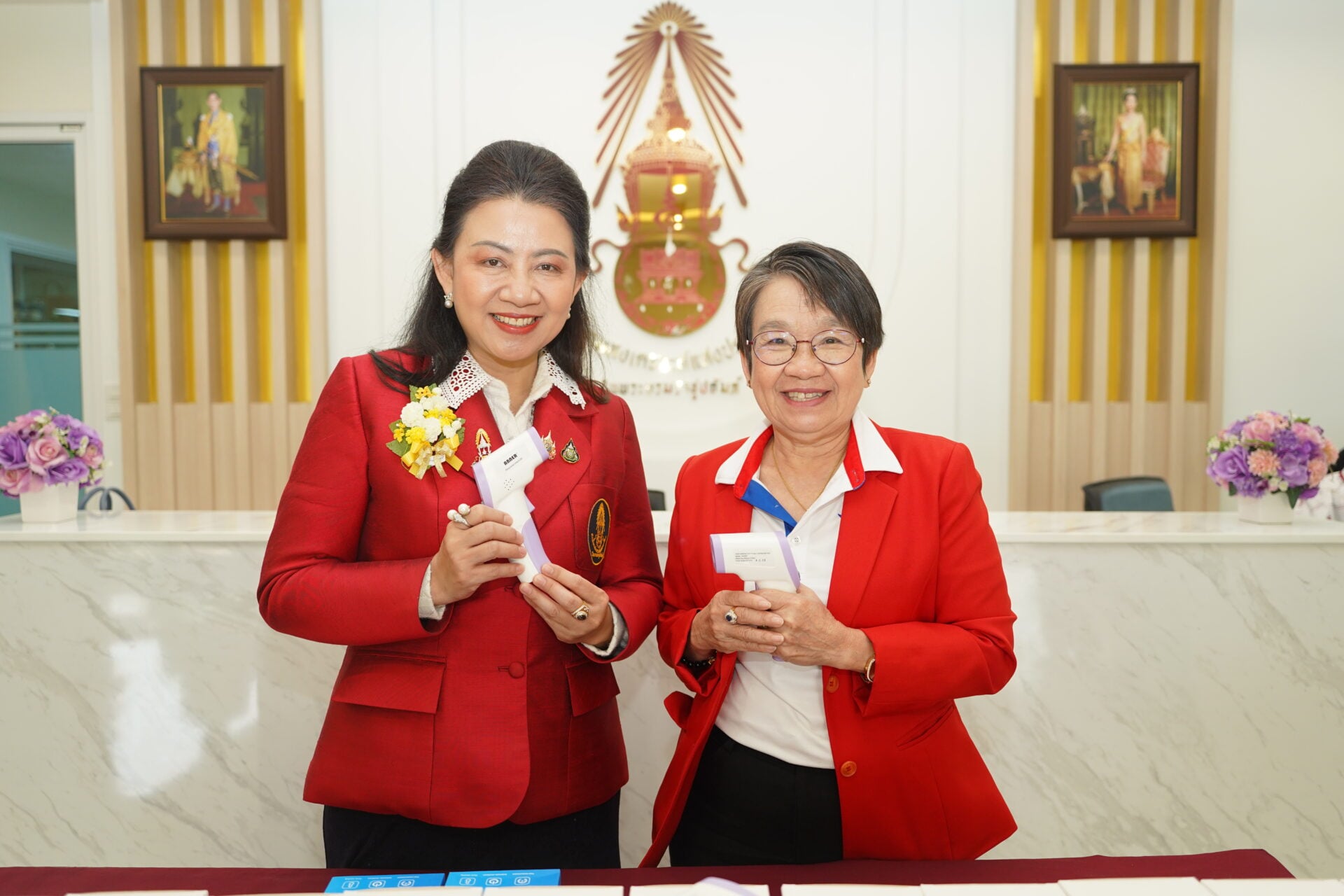 นางเธียรรัตน์ นะวะมะวัฒน์ ประธานมูลนิธิหัวใจบริสุทธิ์ พร้อมด้วยนางสาวกุลพรภัสร์ วงมาจารภิญญา ประธานเจ้าหน้าที่บริหาร บริษัท ไทย สมายล์ บัส